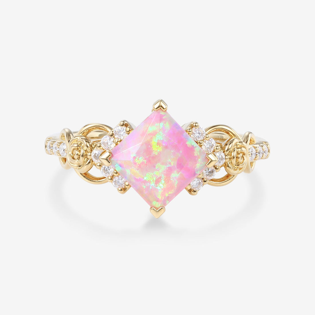 Unique Princess cut Lab Pink Opal Engagement Ring