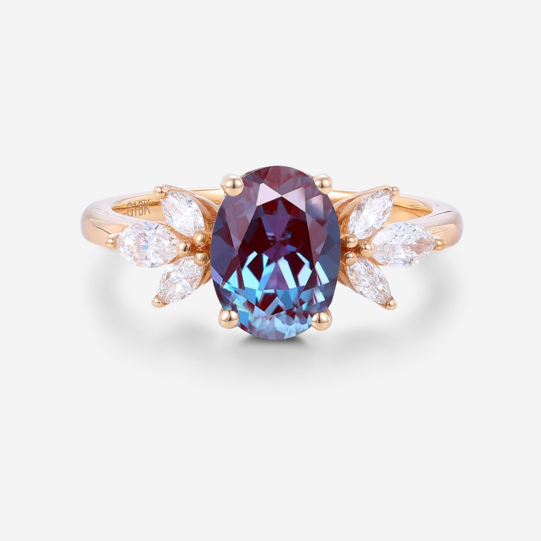 Oval cut Lab Alexandrite | Diamond Engagement ring