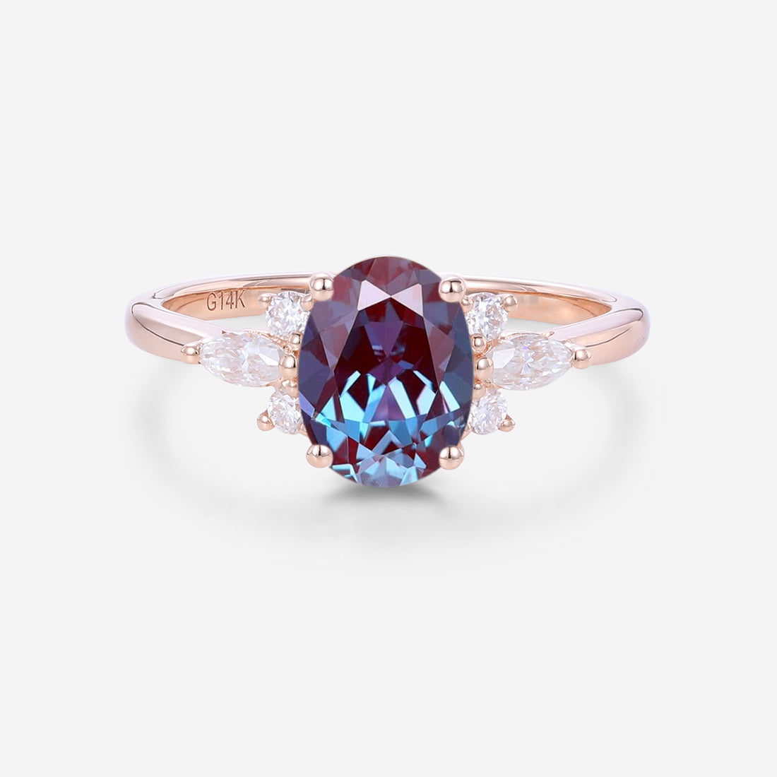1.5Carat Oval cut Lab Alexandrite Cluster Engagement Ring