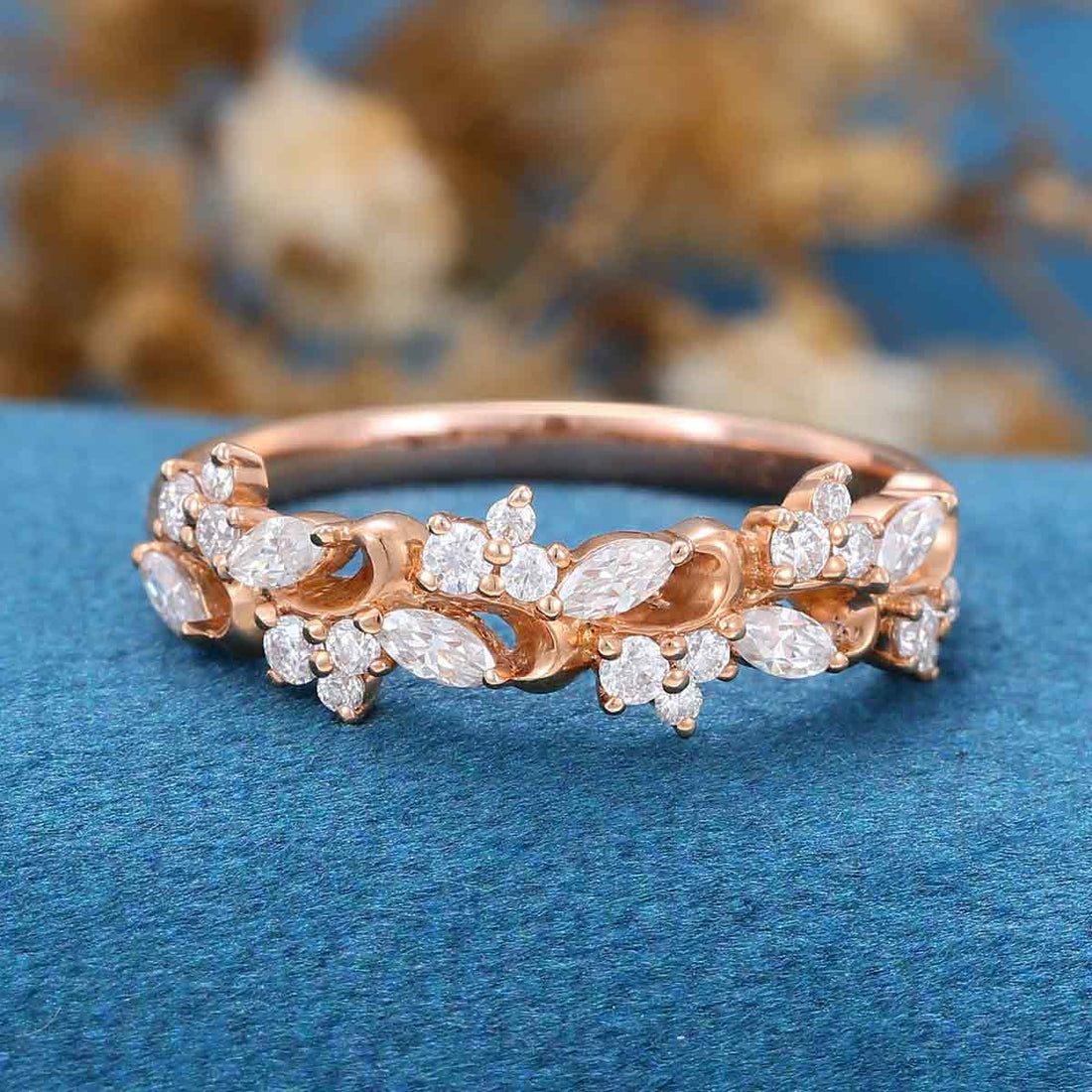 Half Eternity Marquise cut Moissanite | Diamonds Straight Wedding Band