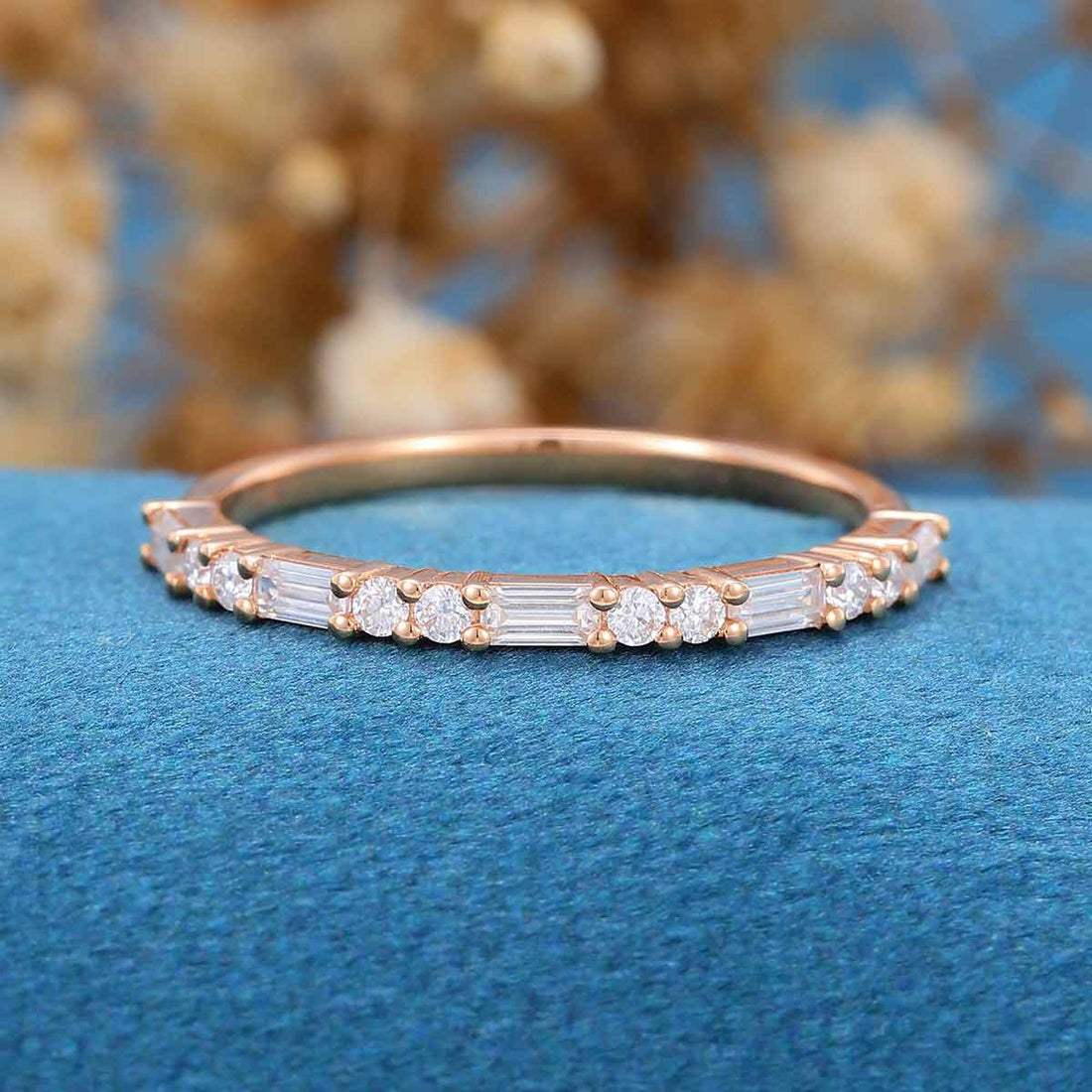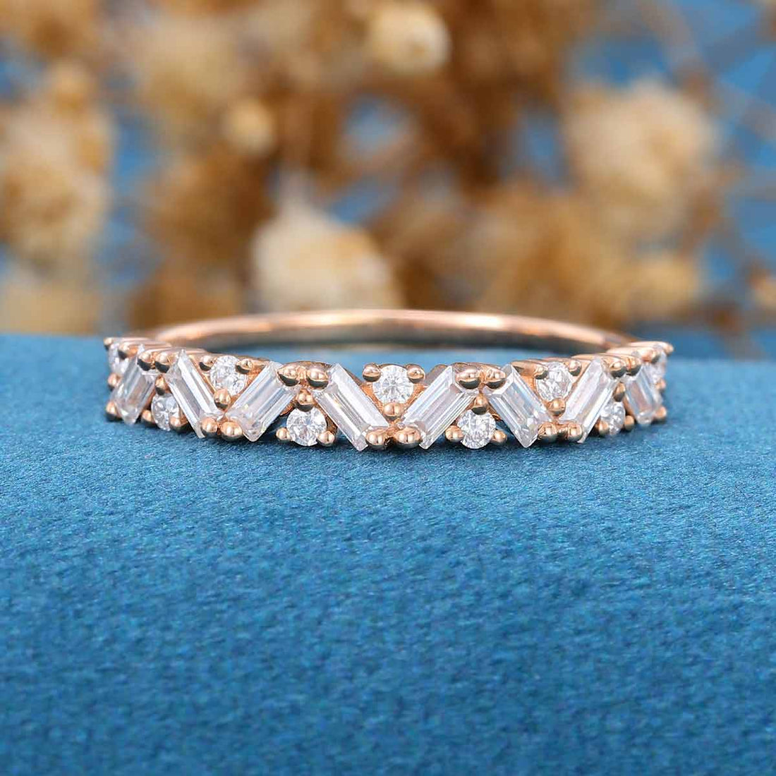 Half Eternity Baguette cut Moissanite | Diamonds Stacking Wedding Band