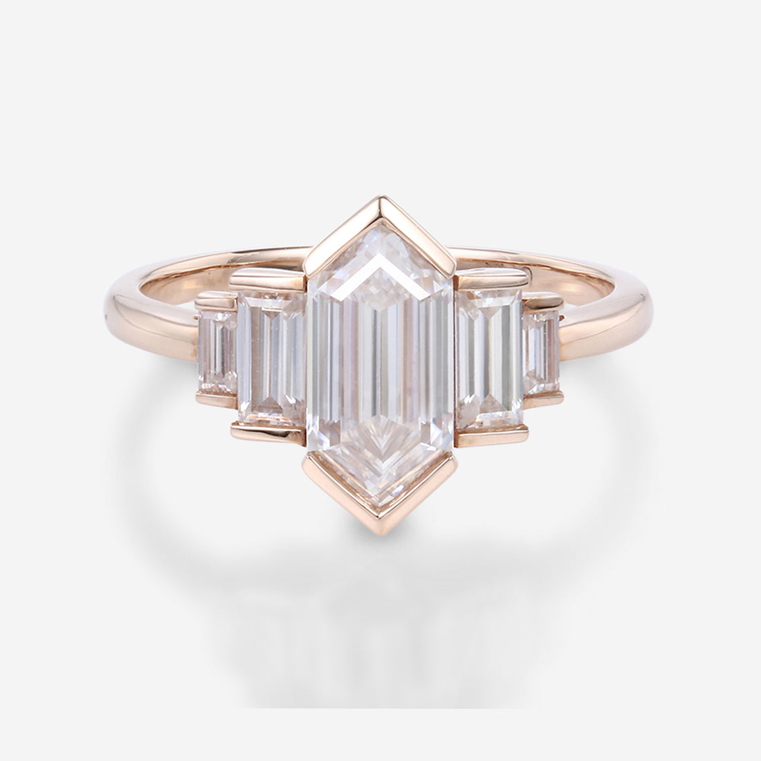 Bezel setting Long Hexagon cut Moissanite Gold Engagement Ring