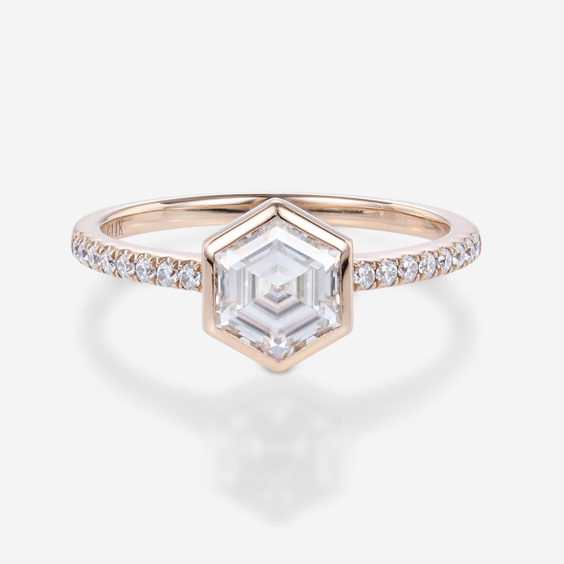 Bezel setting Hexagon cut Moissanite Half Eternity Gold Engagement Ring
