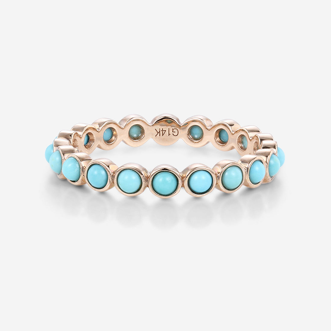 Bezel setting Round cut Turquoise Full Eternity Gold Wedding Band