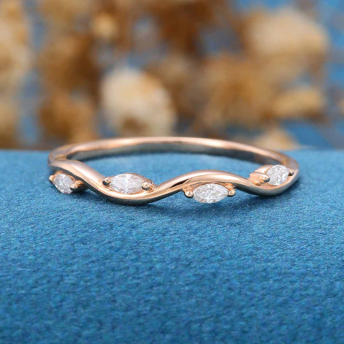 Marquise Cut Moissanite | diamond leaf Curved Wedding Band Ring