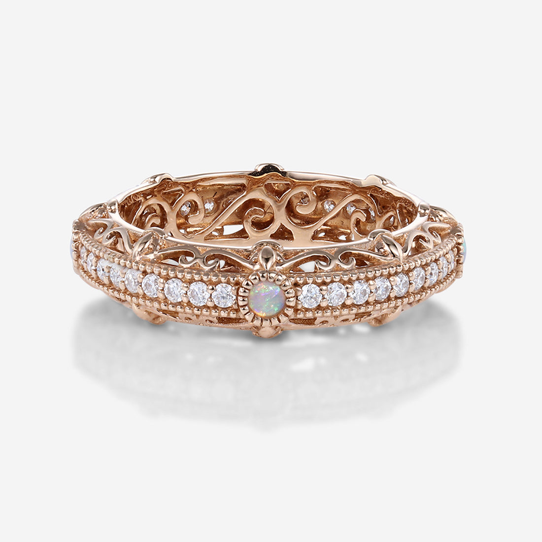 Bezel setting Round cut Opal Full Eternity Gold Wedding Band