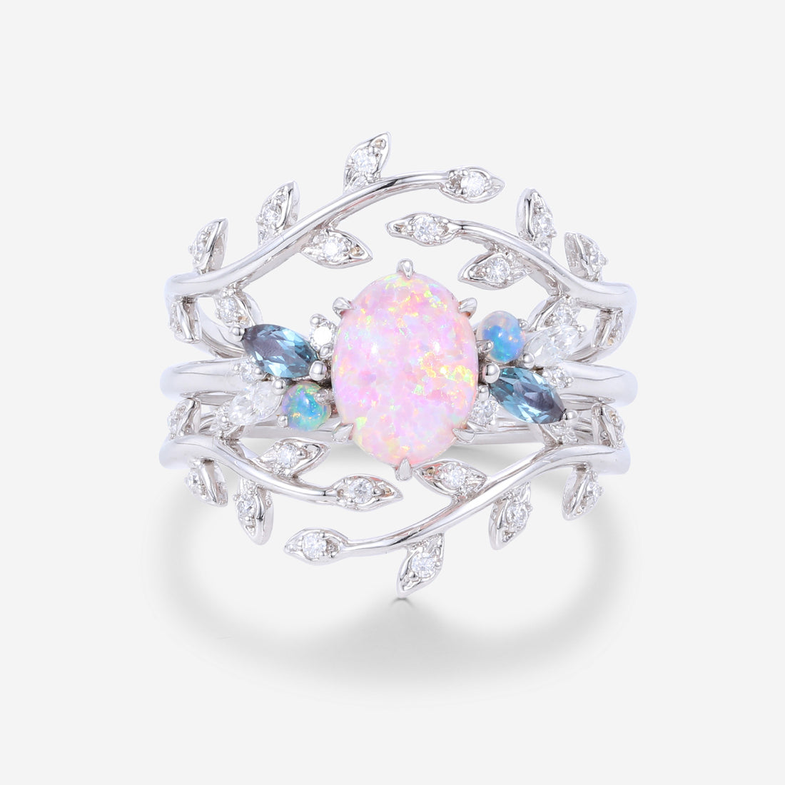 Nature Inspired Oval Cut Lab Opal Wedding Bridal Set
