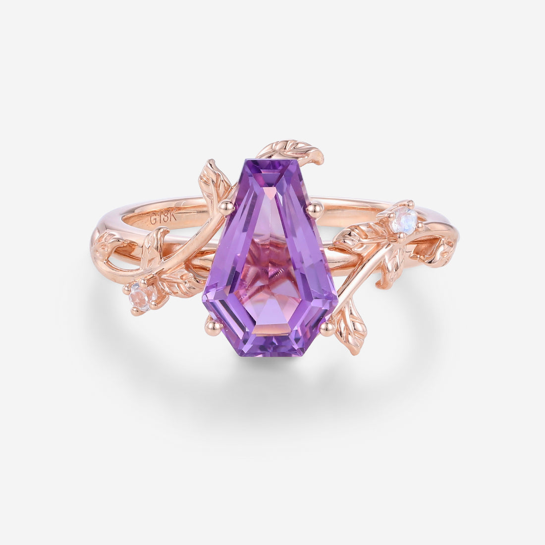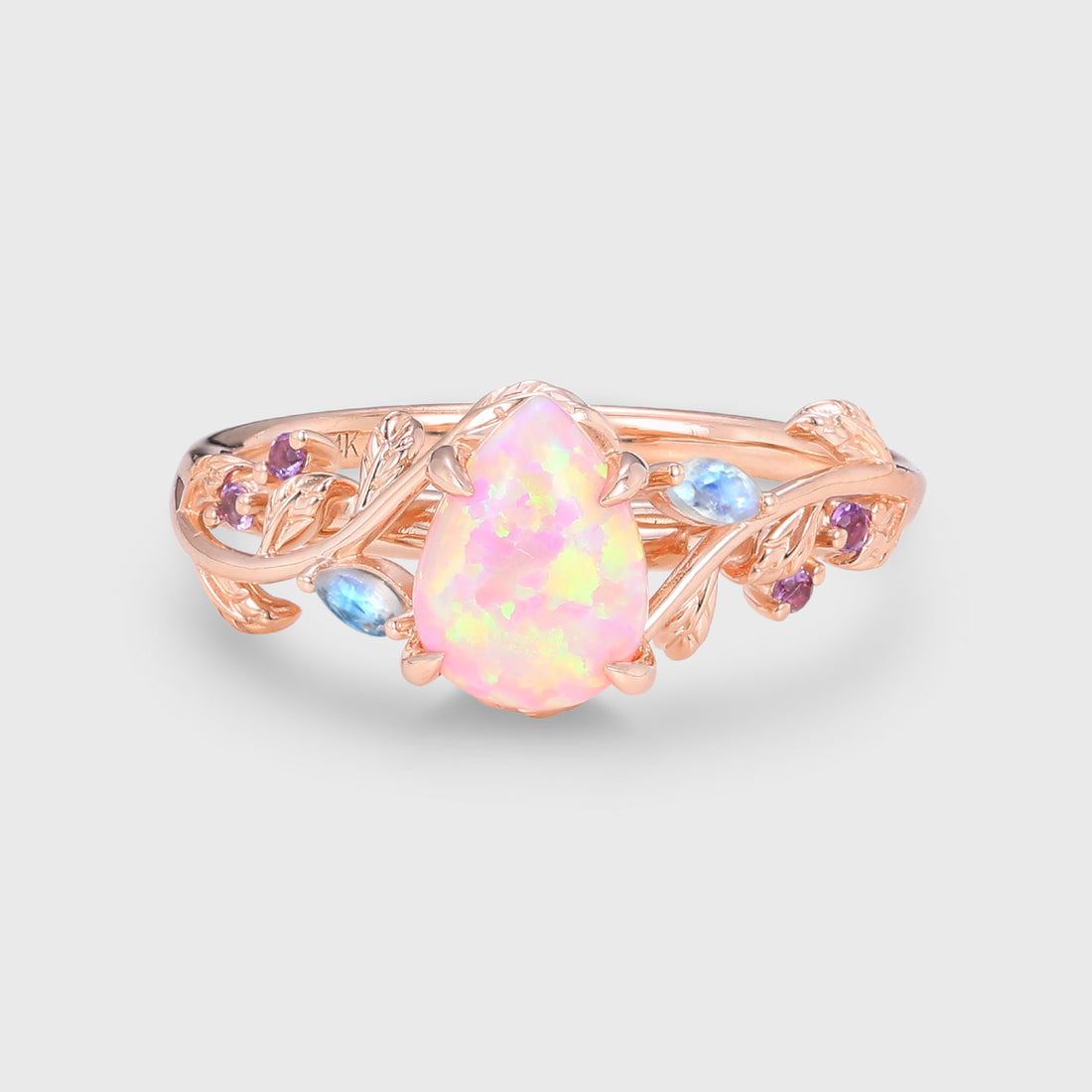 Inspired Pear cut Lab Pink Opal Matching Moonstone | Amethyst Solid Gold Engagement Ring