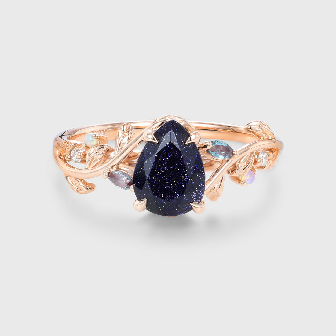 Inspired Pear cut Blue Sandstone Solid Gold Engagement Ring