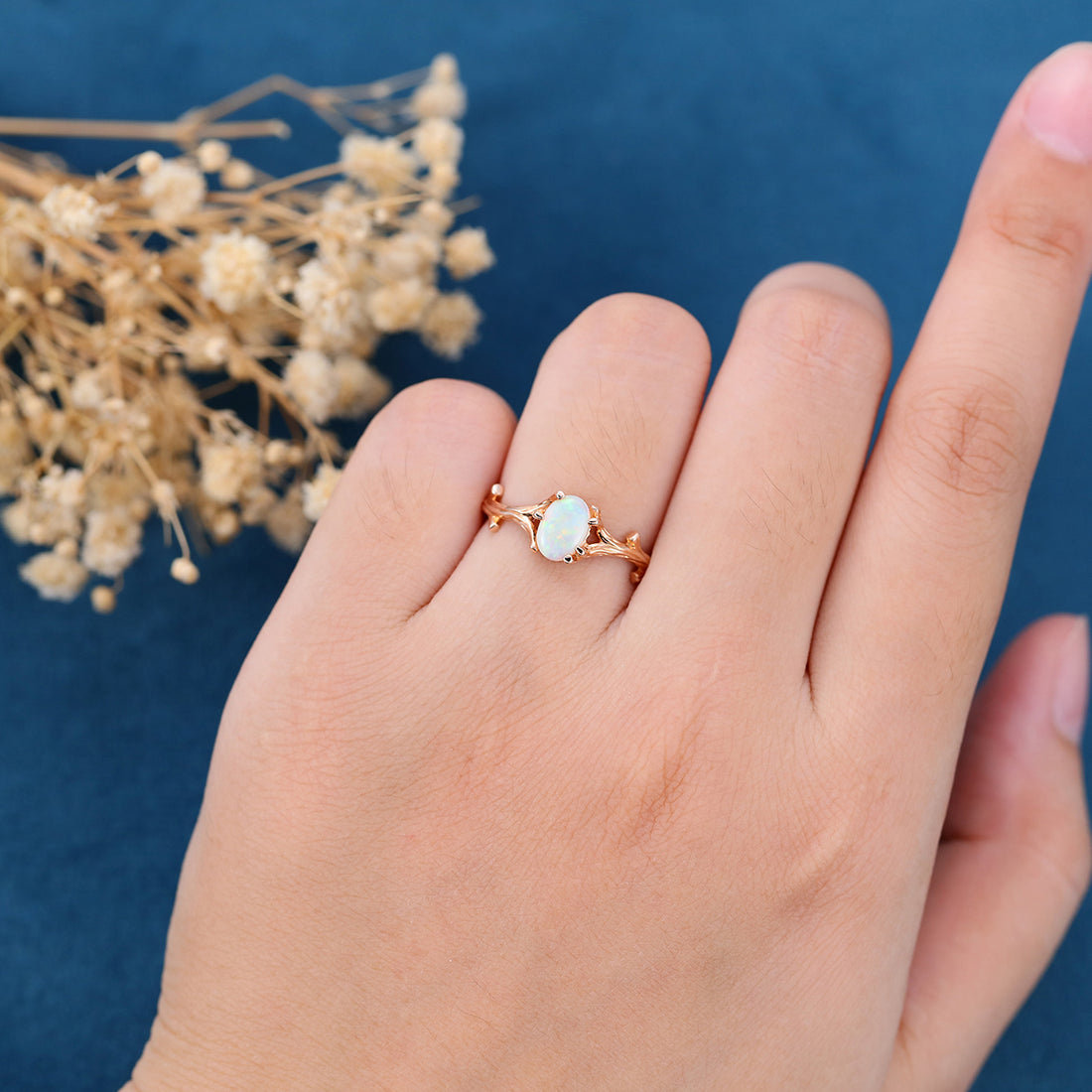 Nature Inspired Oval cut Opal Leaf Engagement Ring