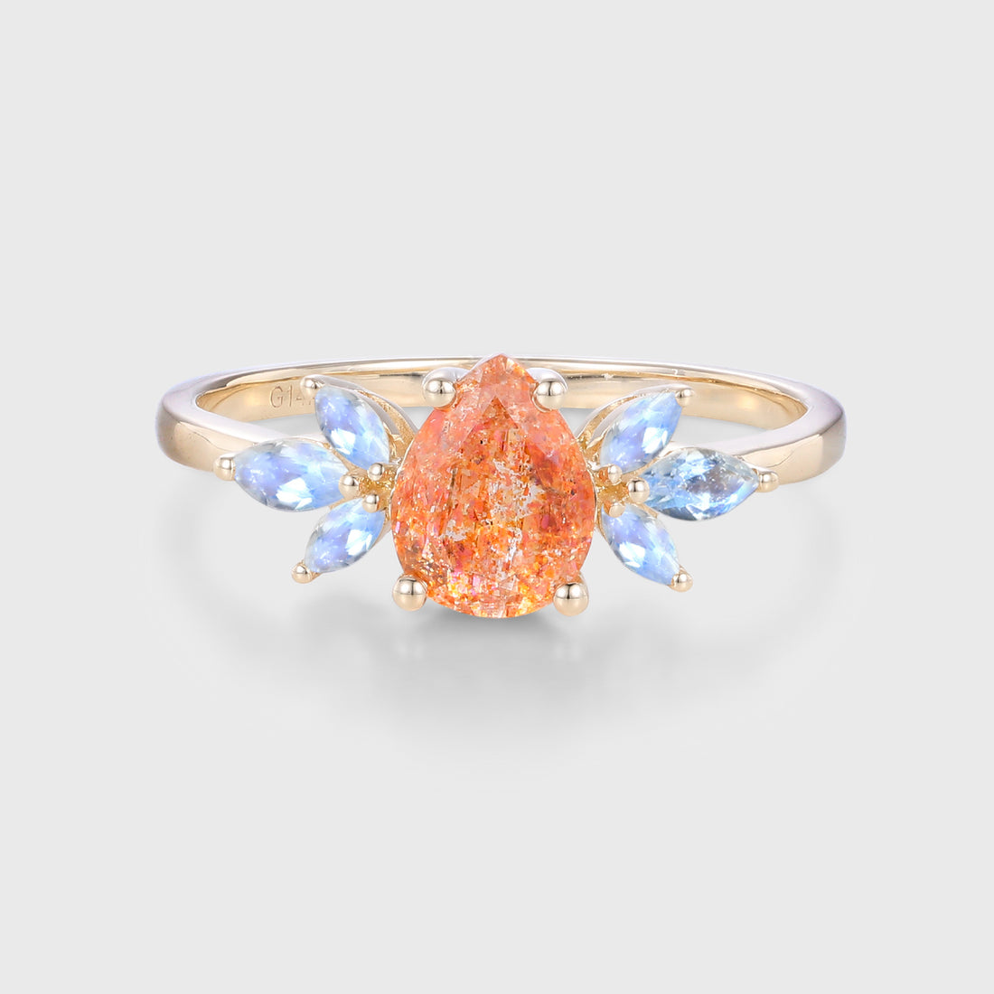 1.2 Carat Pear Sun Stone + Moonstone Cluster | Opal wedding Bridal Set