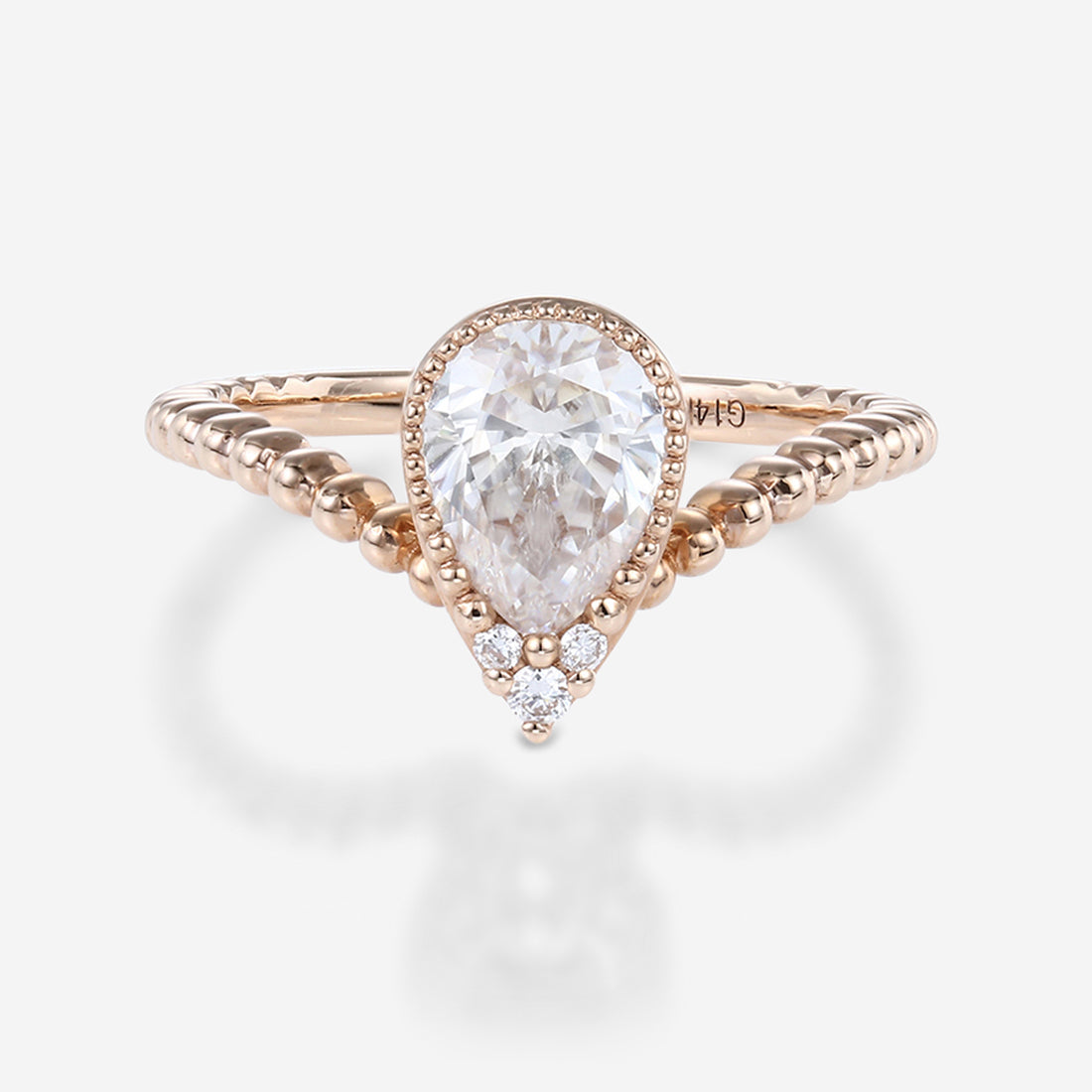 Bezel setting Pear cut Moissanite Gold Engagement Ring