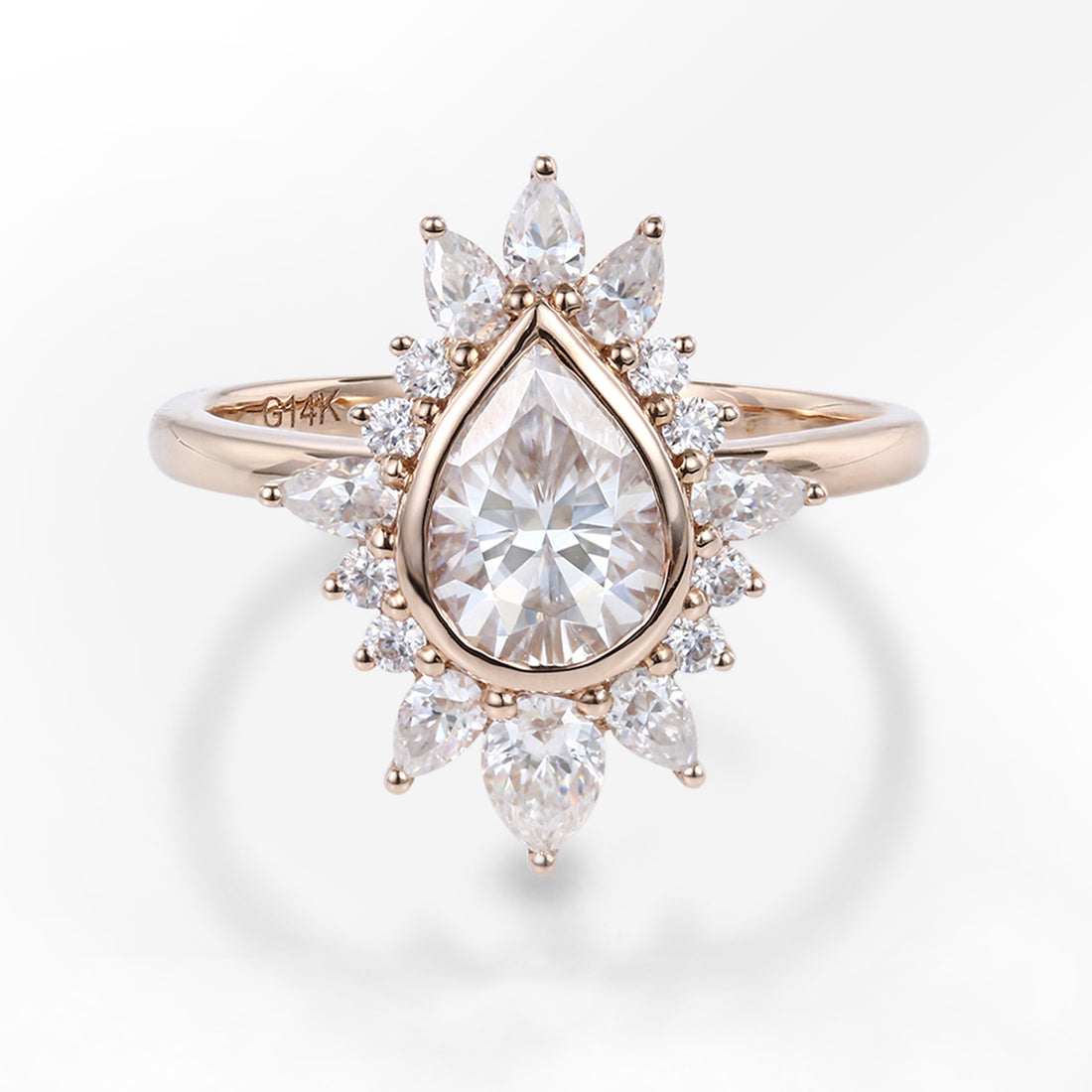 1.2Carat Pear Sun Stone Cluster Engagement ring Bridal Set