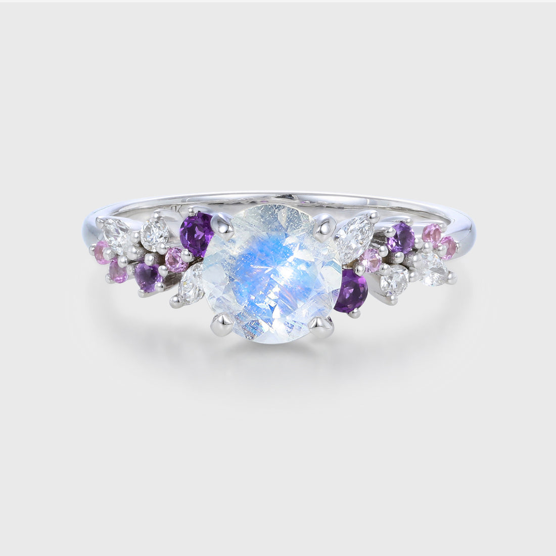 Round cut Moonstone Cluster Engagement ring