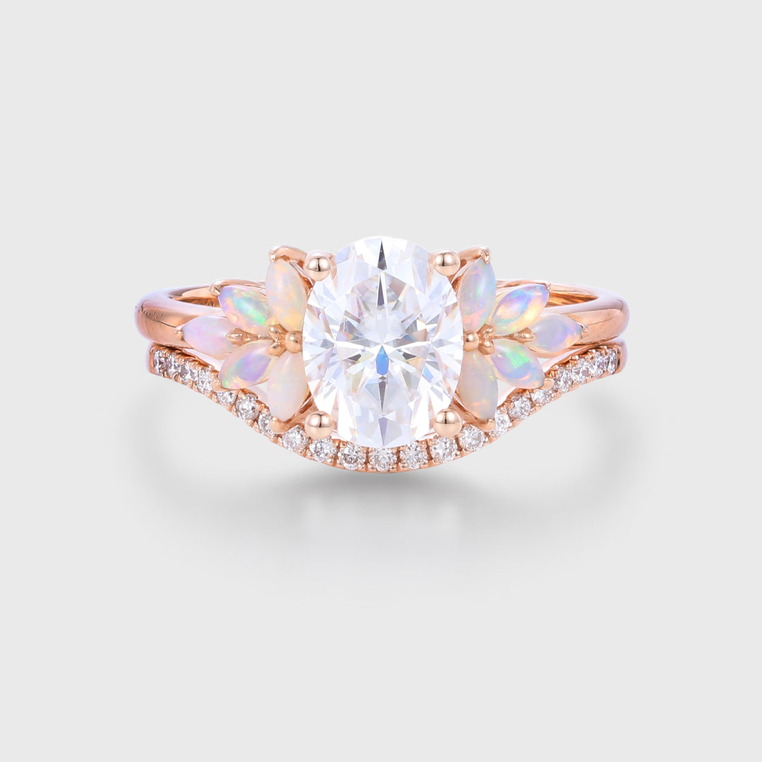 Oval Cut Moissanite+Opal Rose Gold Wedding Bridal set