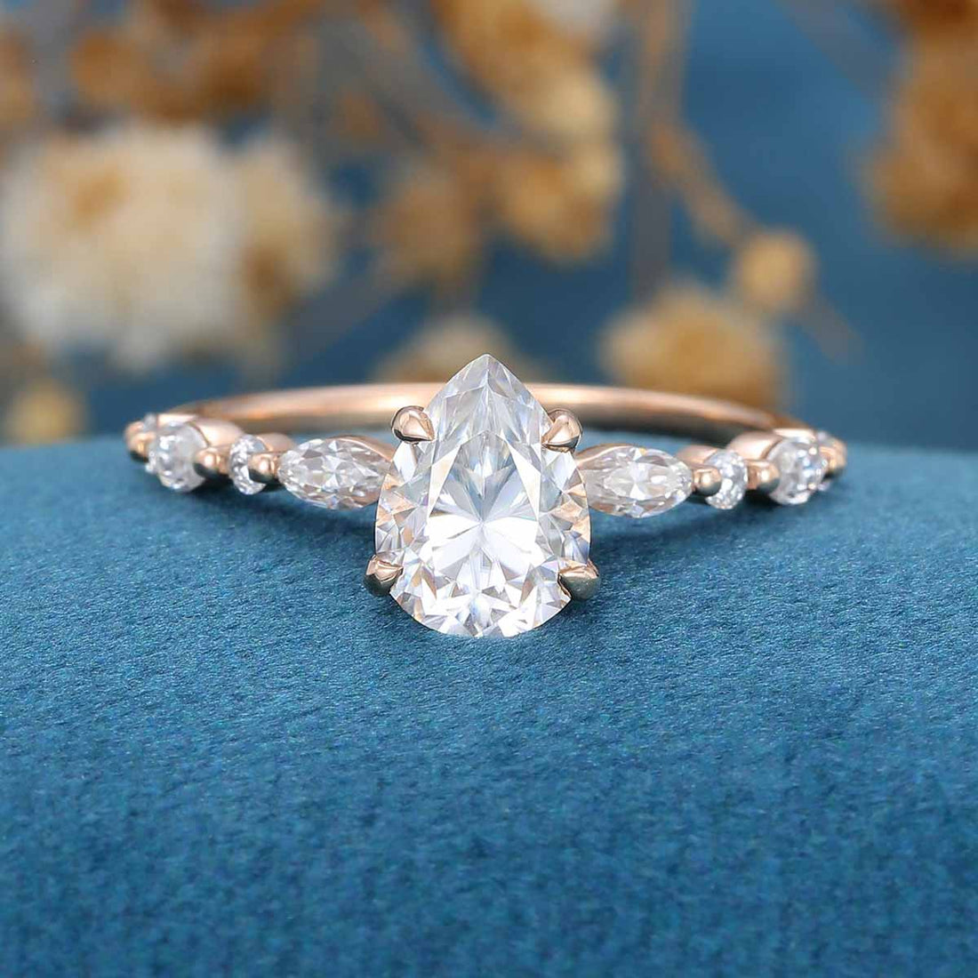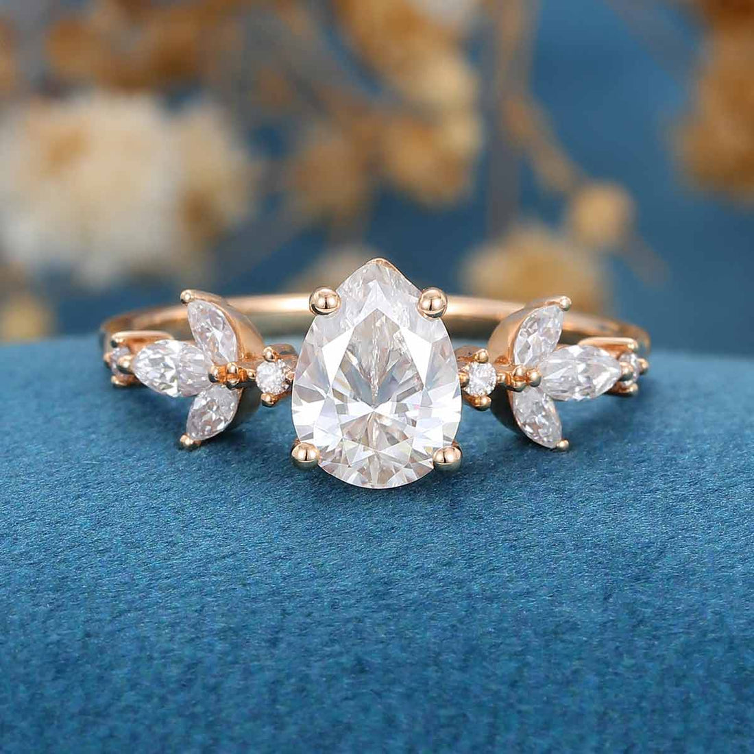Pear cut Moissanite Cluster Engagement ring Bridal Set