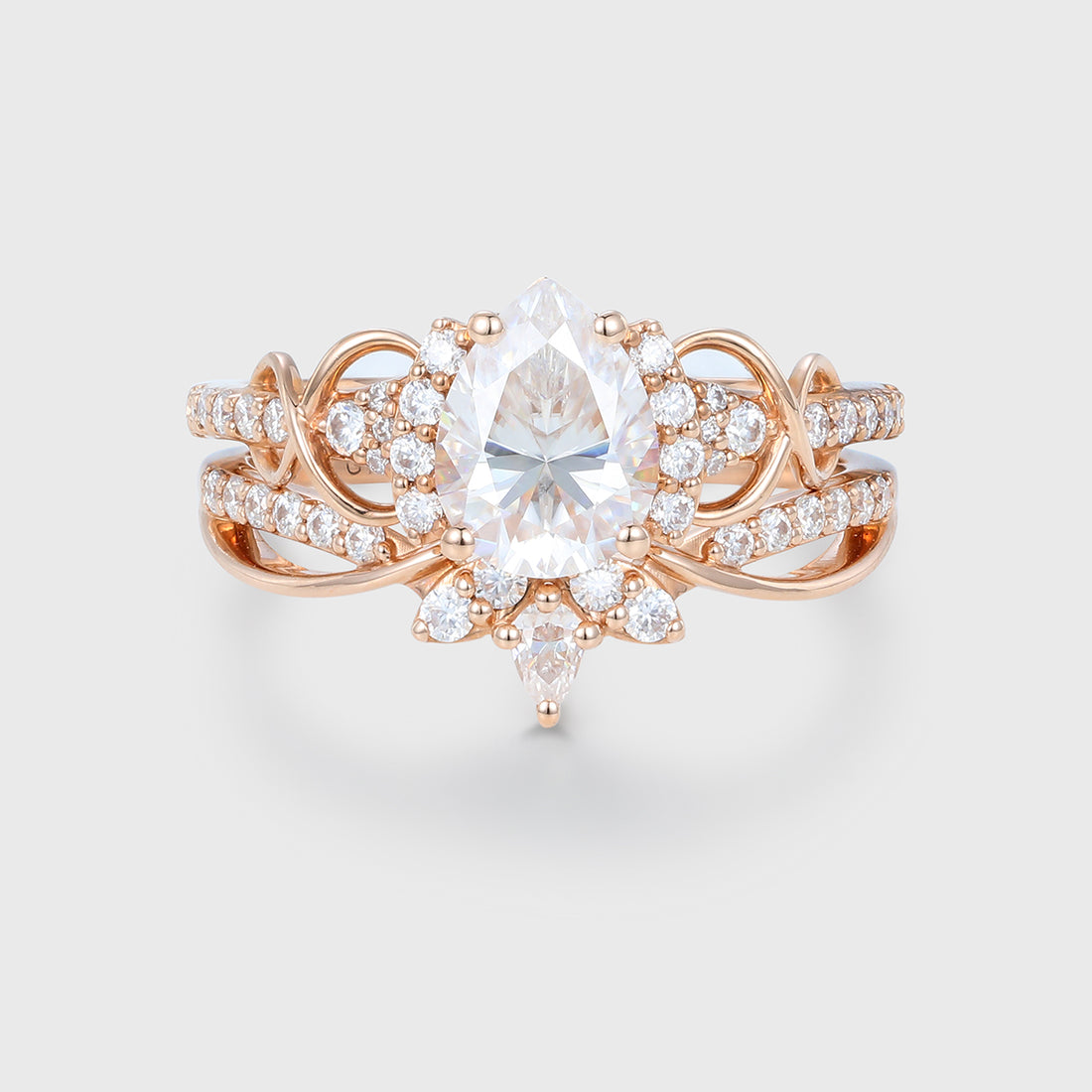 Pear cut Moissanite Engagement ring Bridal Set