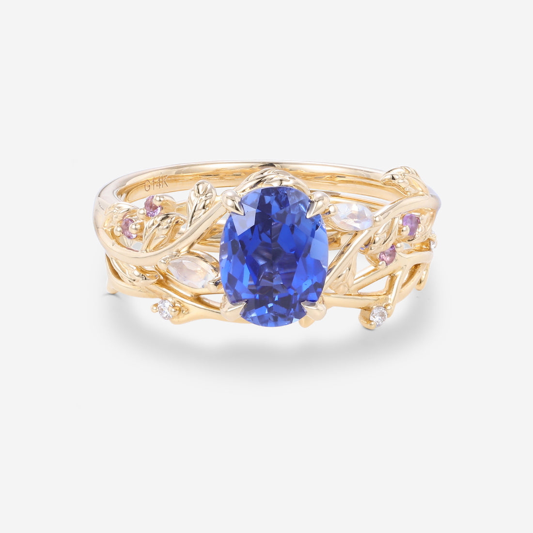1.5Carat Oval Cut Lab Sapphire Leaf Wedding Bridal Set