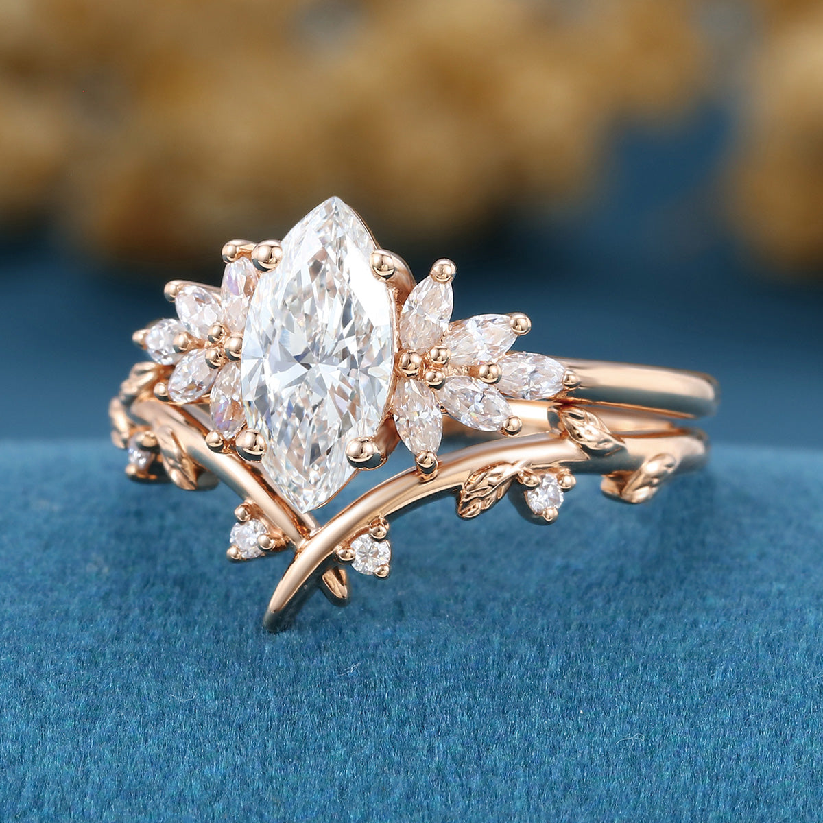 1.0 Carat Marquise cut Lab Grown Diamond Wedding bridal set