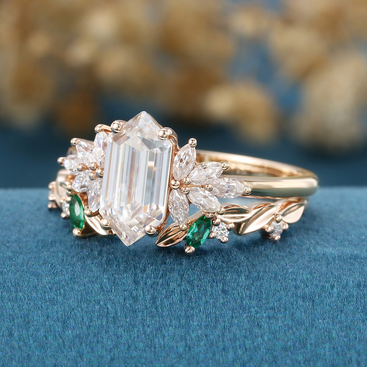 1.0Carat Hexagon Moissanite Matching Diamonds | Lab Grown Emerald Rose Gold Wedding Bridal Set