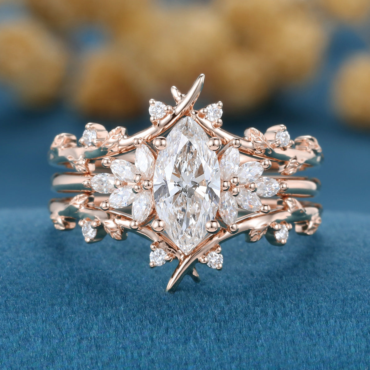 1.0Carat Marquise cut Lab-Grown Diamond Cluster Wedding Bridal set