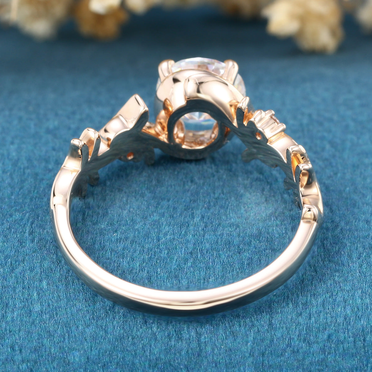 1.0Carat Round Cut Moissanite Leaf Design Rose Gold Engagement Ring