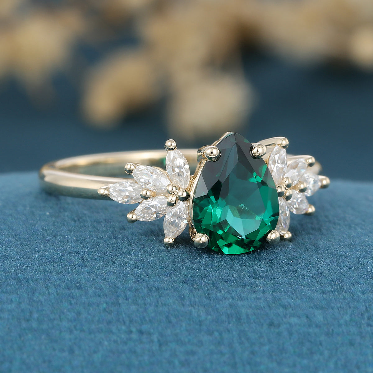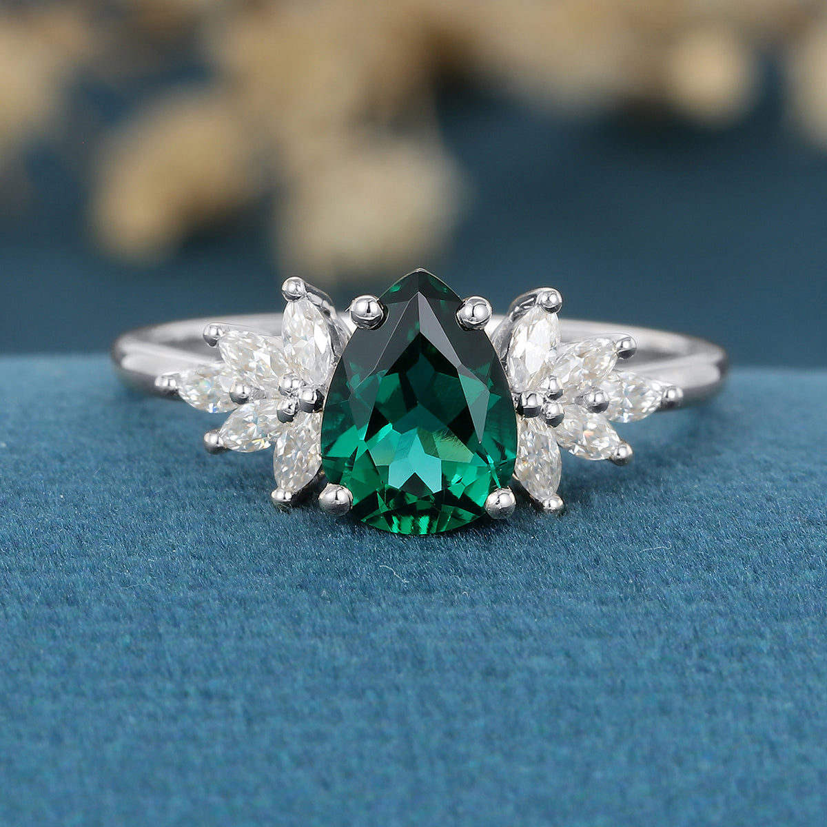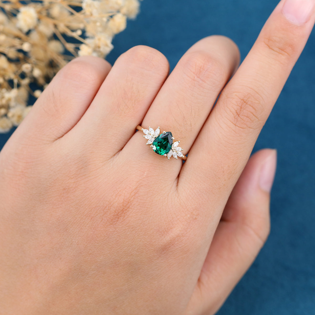 1.2 Carat pear cut Lab Emerald Engagement Ring