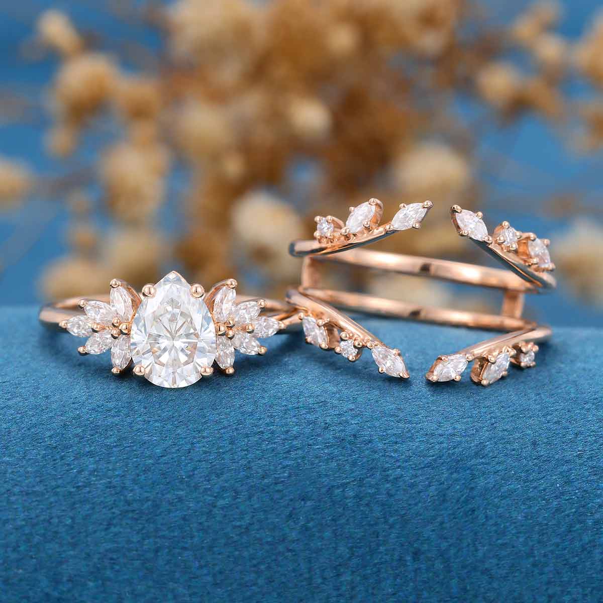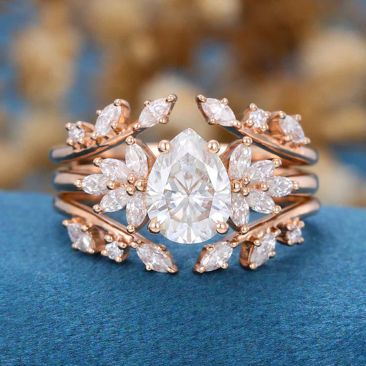 1.2 Carat Pear cut Moissanite wedding Bridal Set
