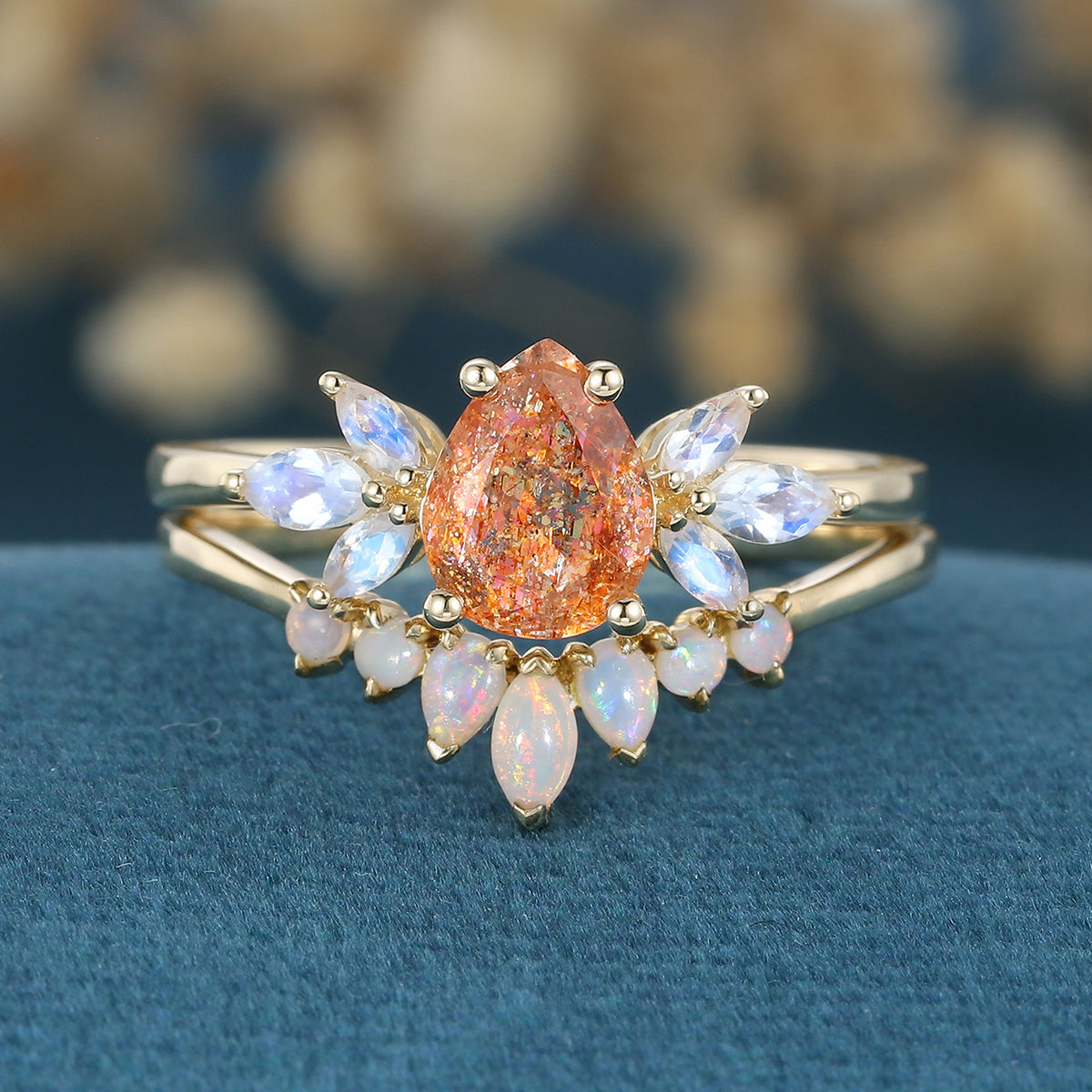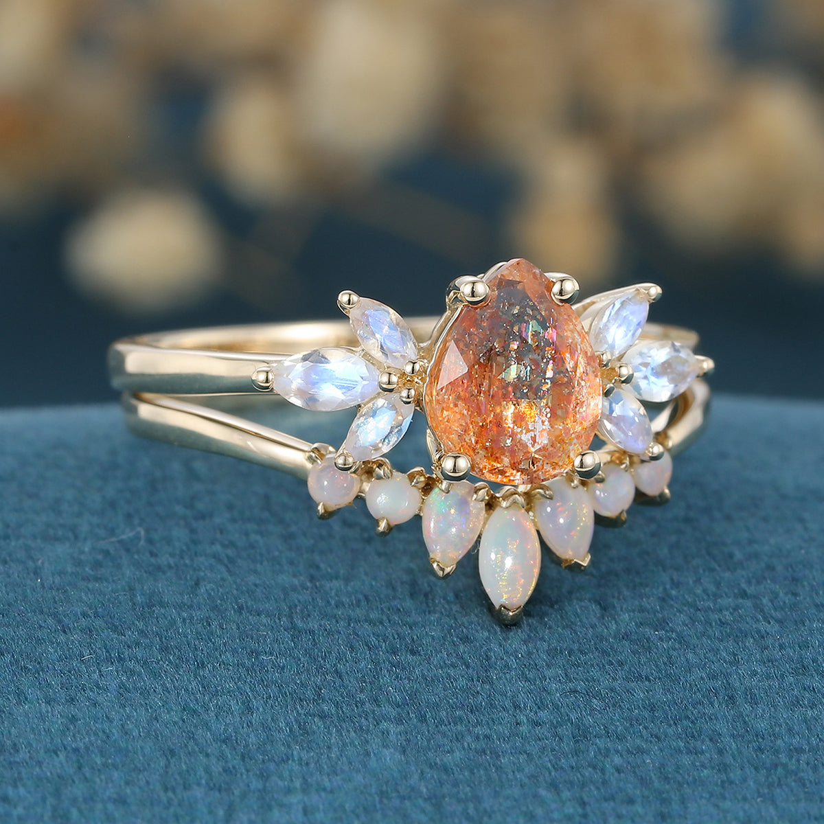 1.2 Carat Pear Sun Stone + Moonstone Cluster | Opal wedding Bridal Set
