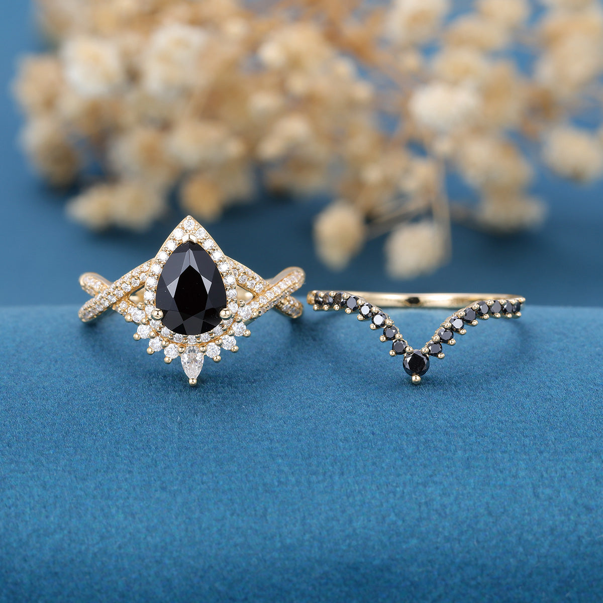 Type: Black Onyx 1.2 Carat Size: 6 x 8 mm Shape: Pear cut Total weight: 3.6 g (Depending on the ring size) |