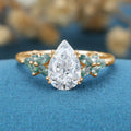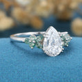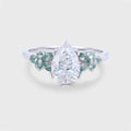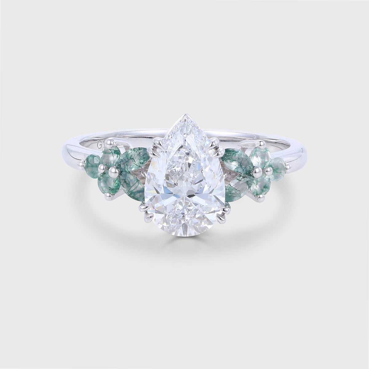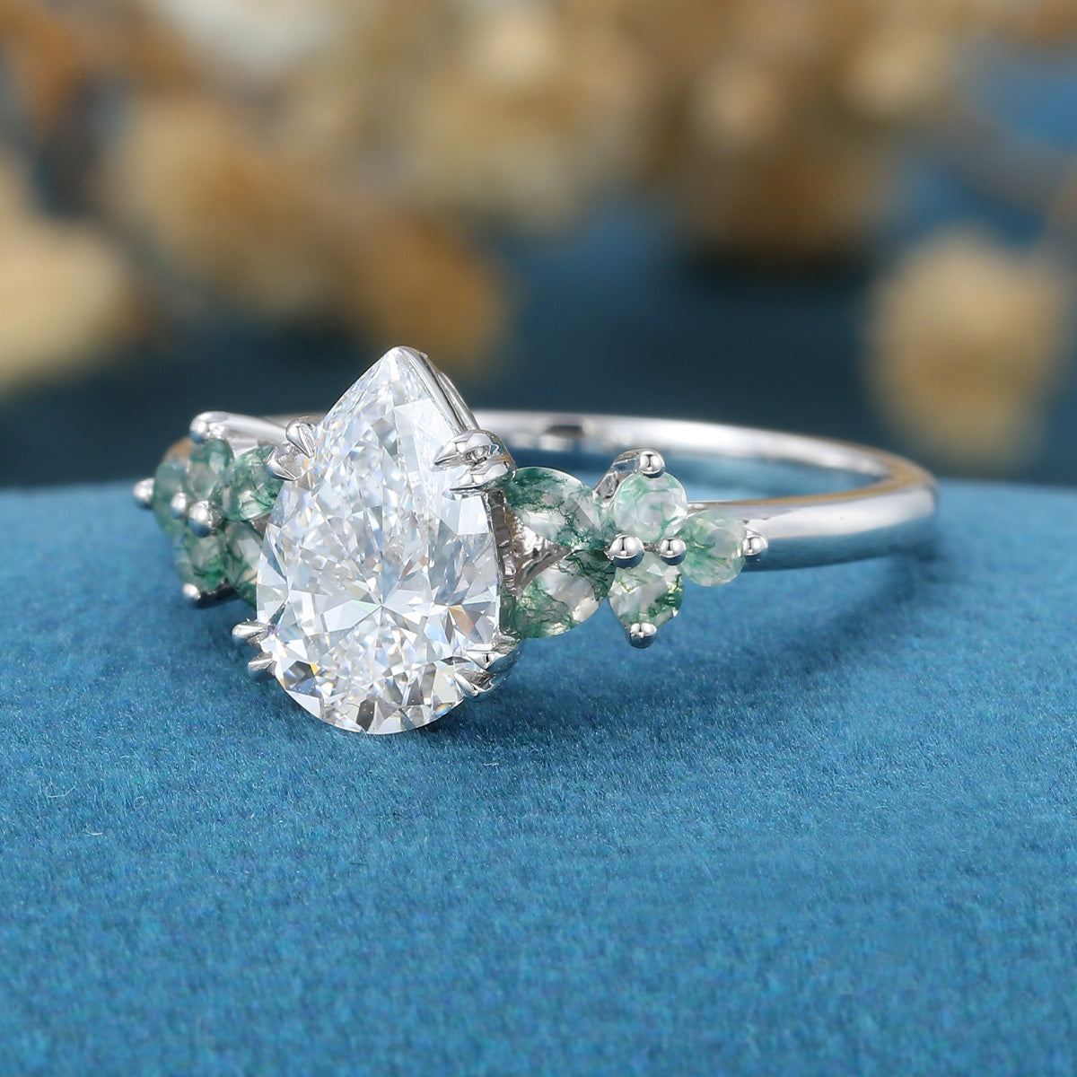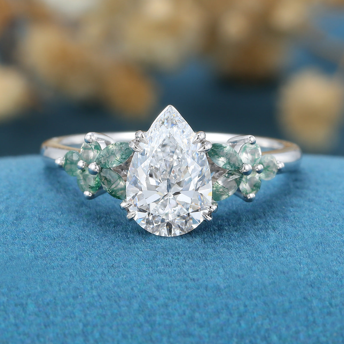 1.2Carat Pear Cut Lab grown diamond Matching Moss Agate Cluster Engagement ring