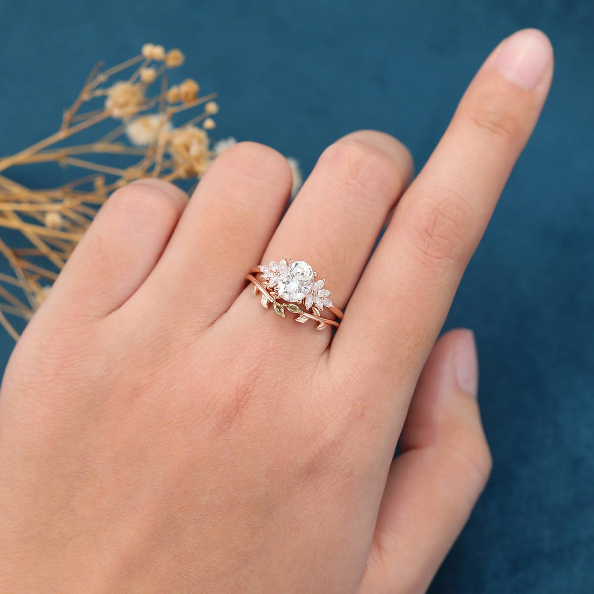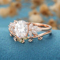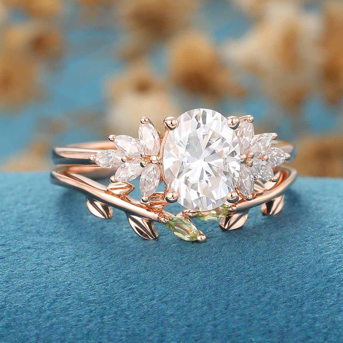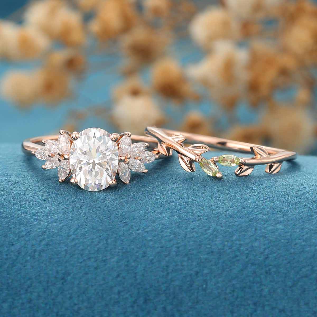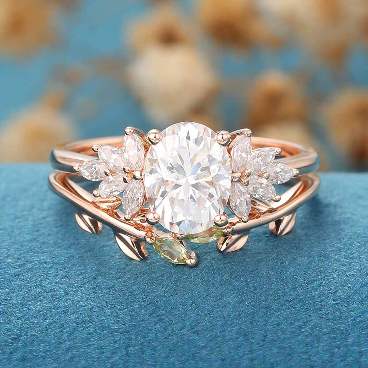 1.5 Carat Oval cut Moissanite Cluster Engagement ring Olivine wedding Bridal Set