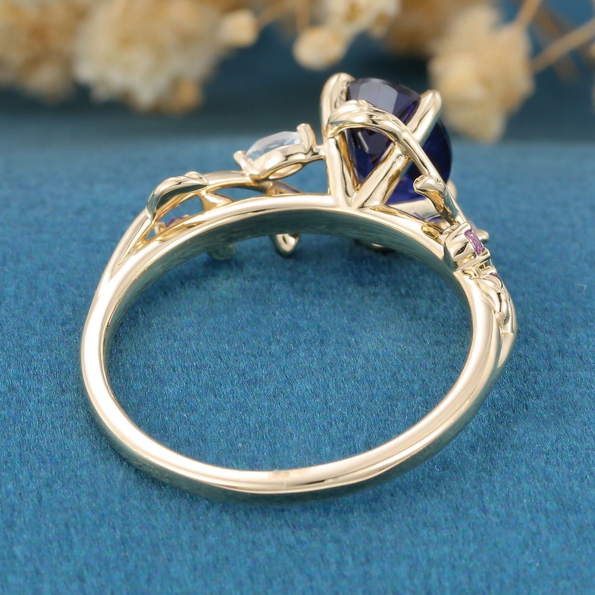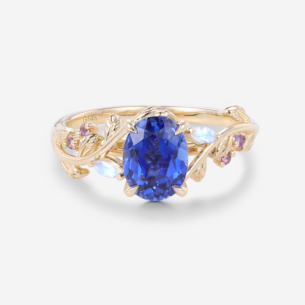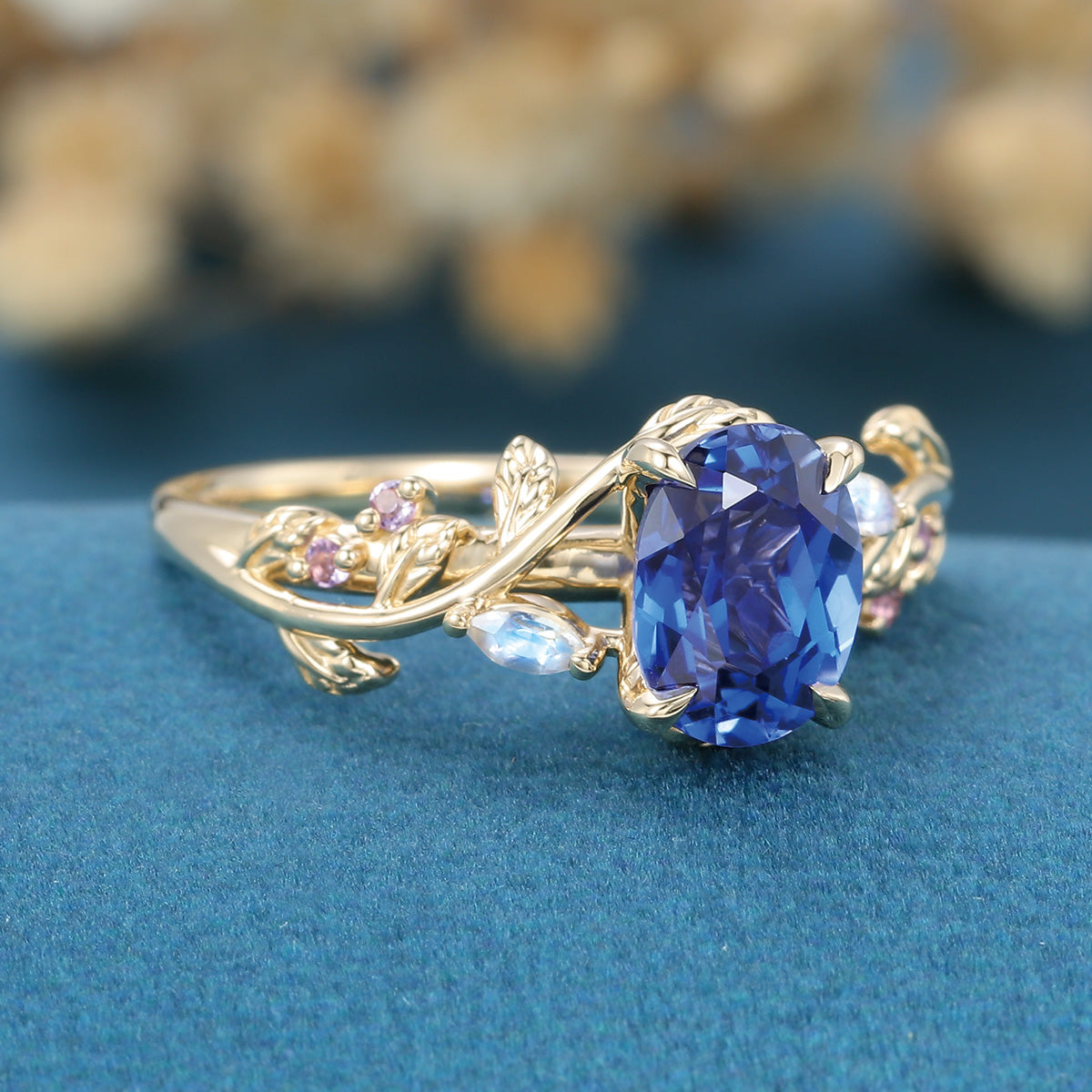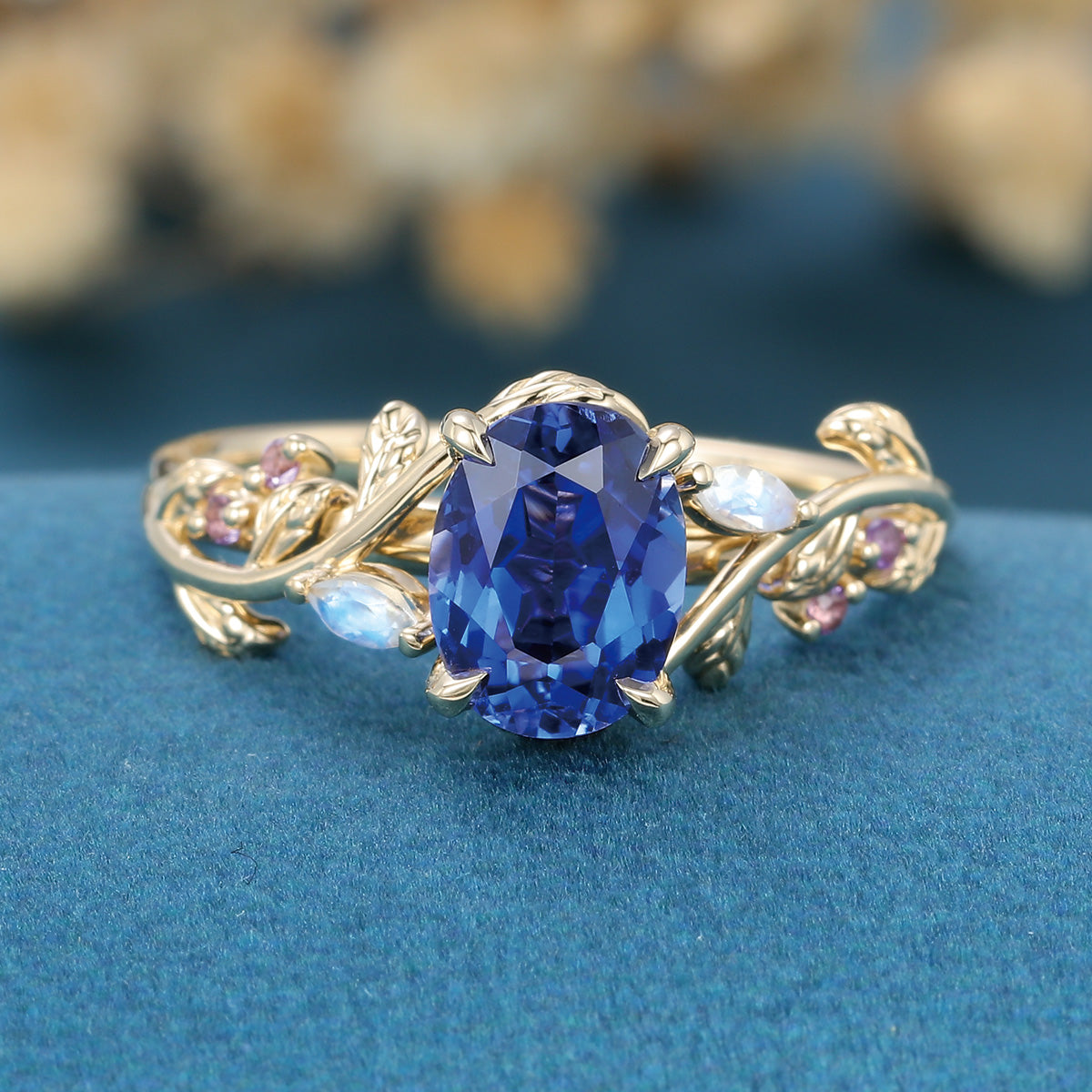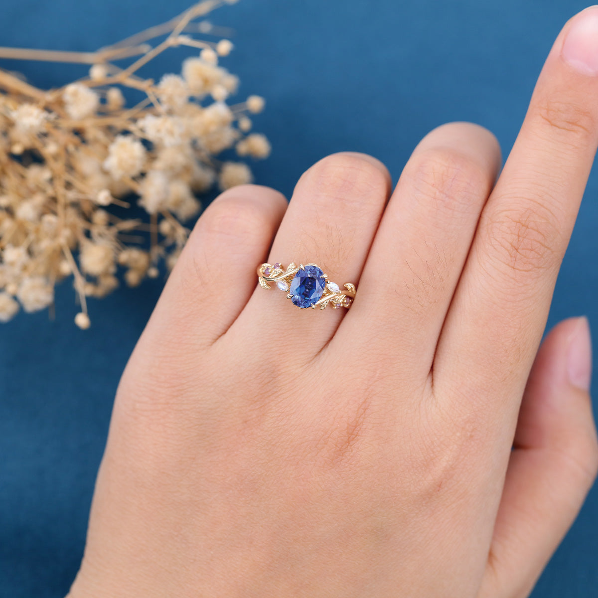 1.5Carat Oval Cut Lab Sapphire Leaf Engagement ring