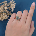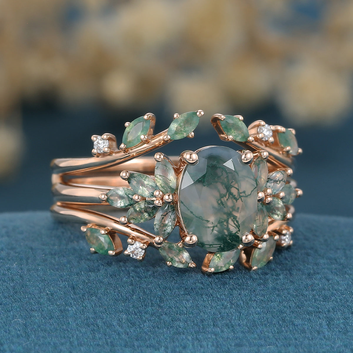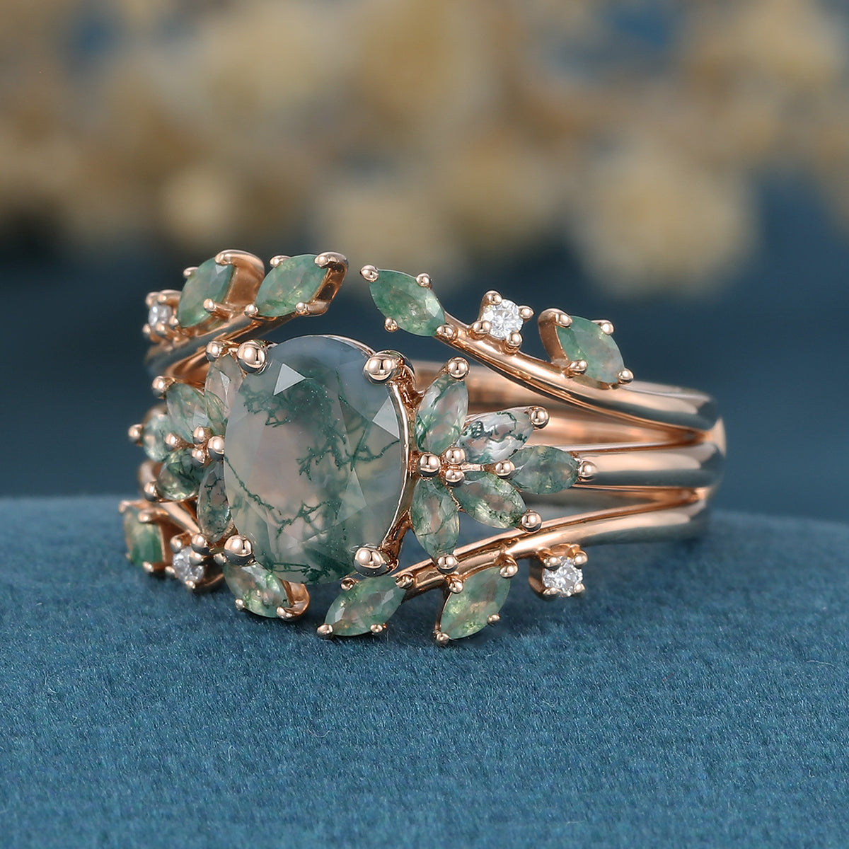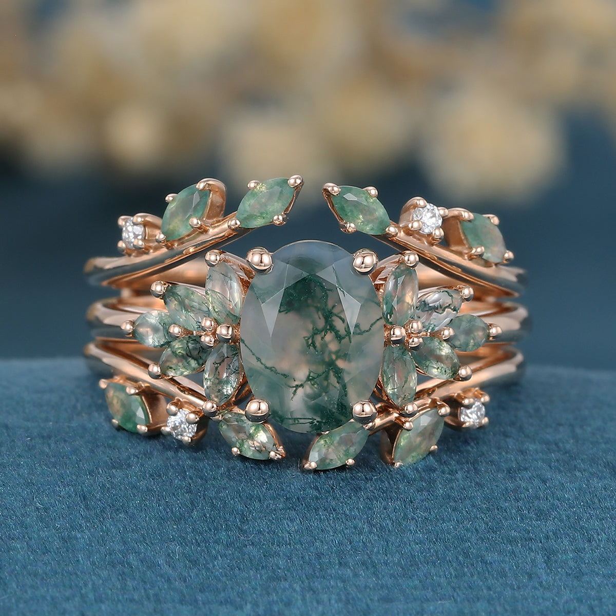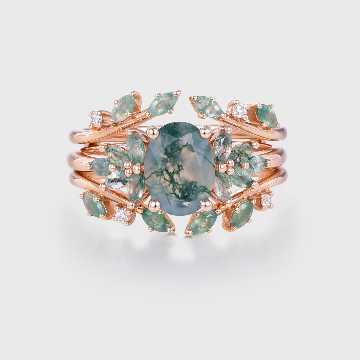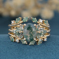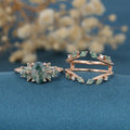 1.5Carat Oval Cut Moss Agate Cluster Engagement ring Bridal Set