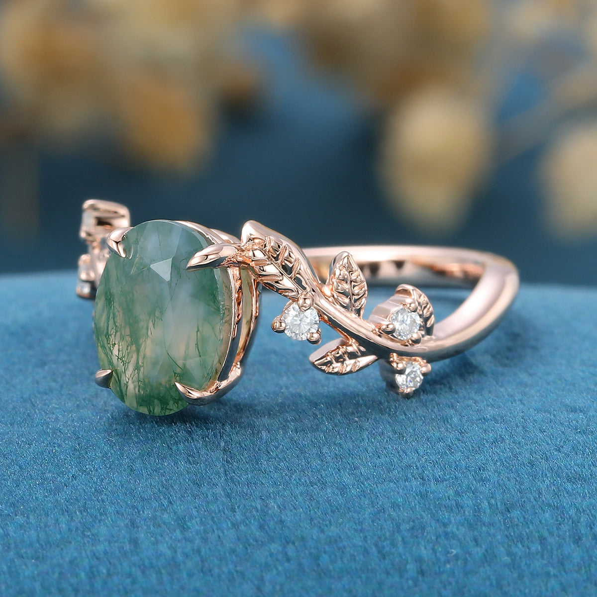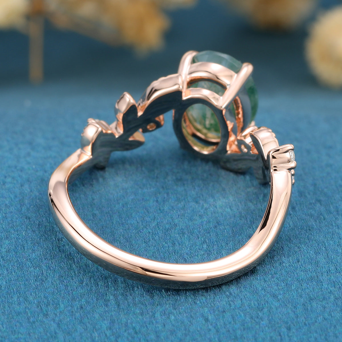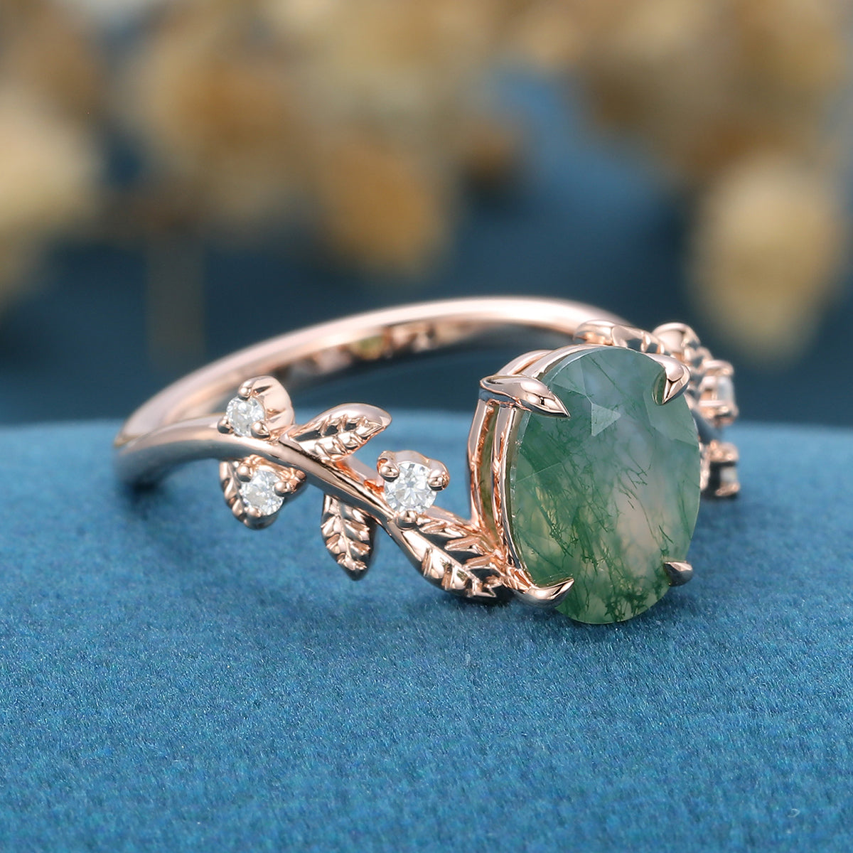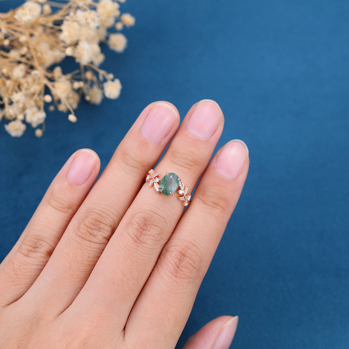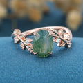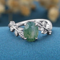 1.5Carat Oval Cut Moss Agate Leaf Engagement ring