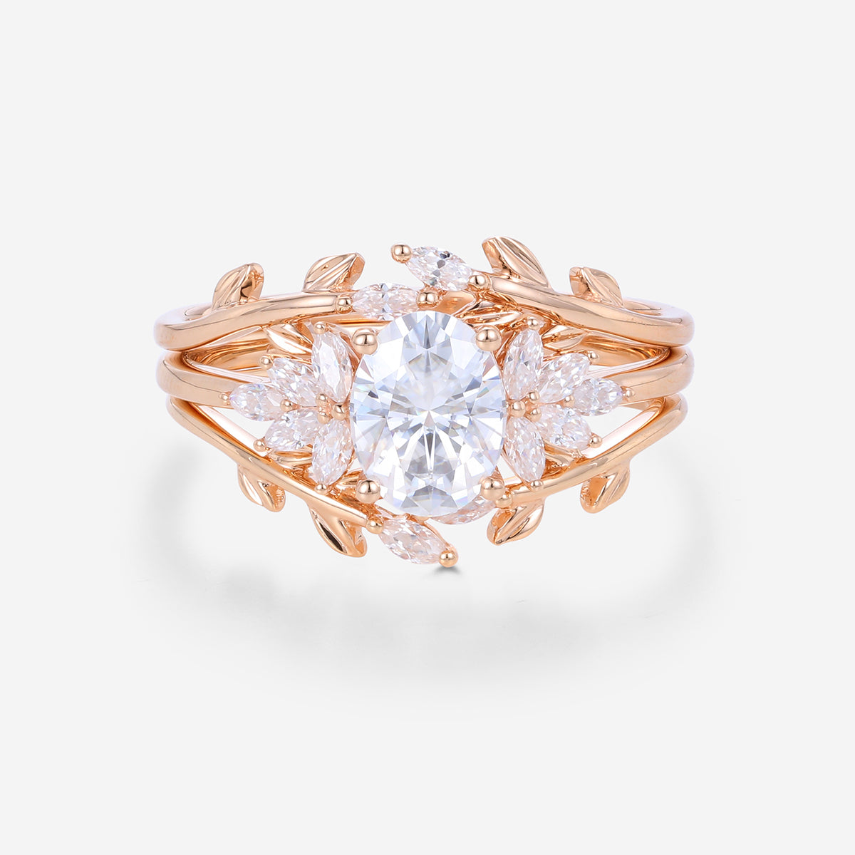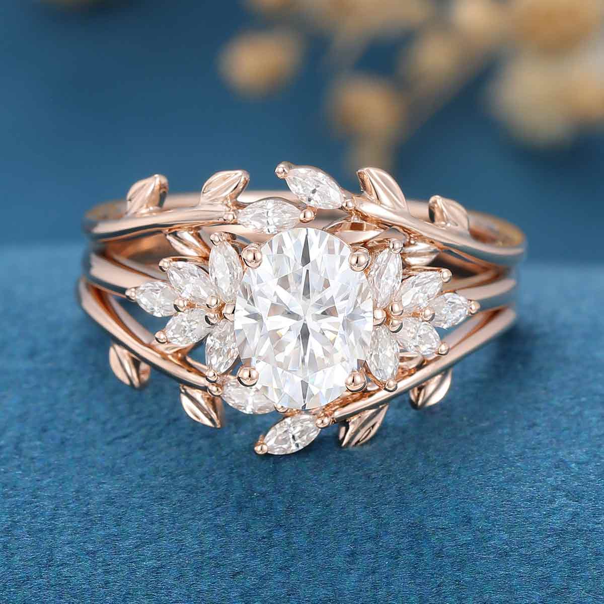1.5Carat Oval Moissanite Cluster Engagement Bridal Set