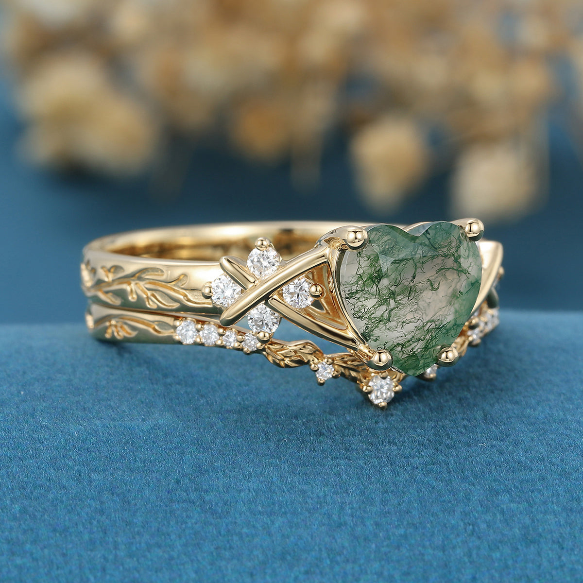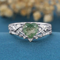 2.0 Carat Heart cut Moss Agate Bridal Set