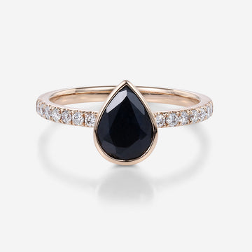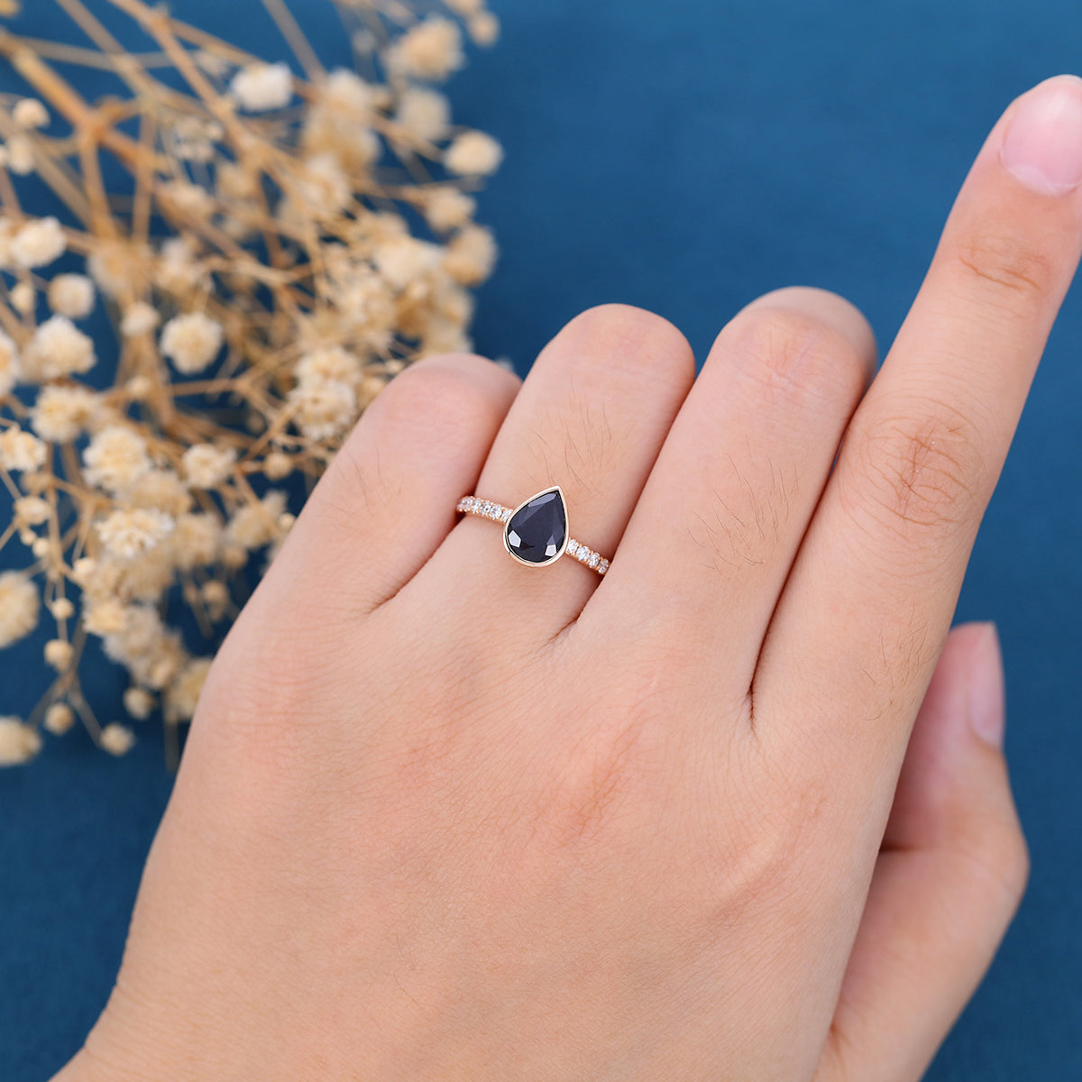 Bezel Set Pear cut Black Onyx Half Eternity Gold Engagement Ring