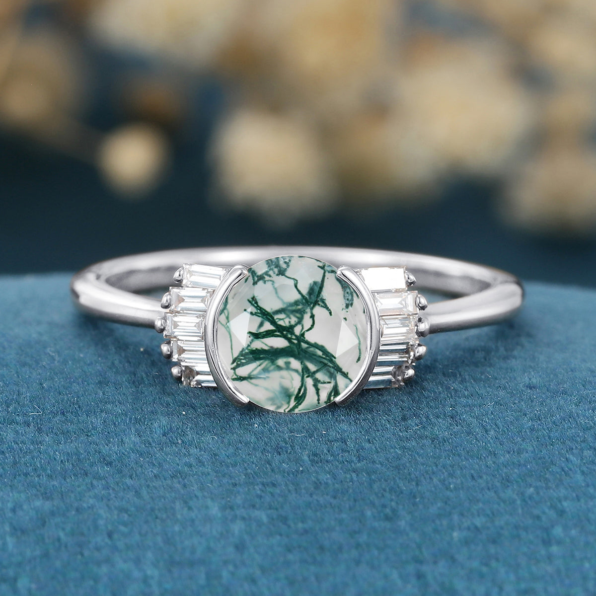 Type: Moss Agate 1.0Carat Size: 6.5 mm Shape: Rose cut Total weight: 2.5g(Depending on the ring size) |