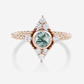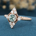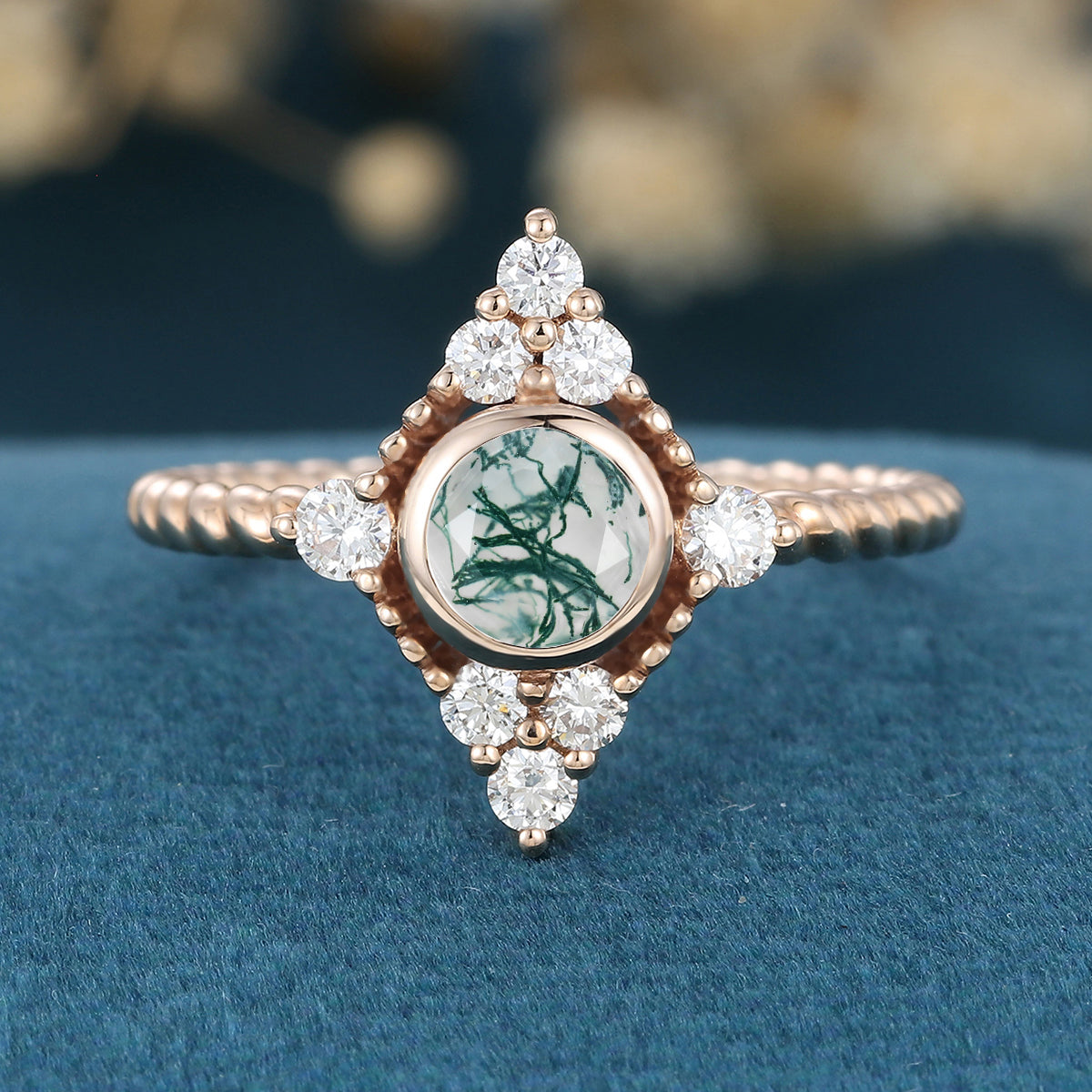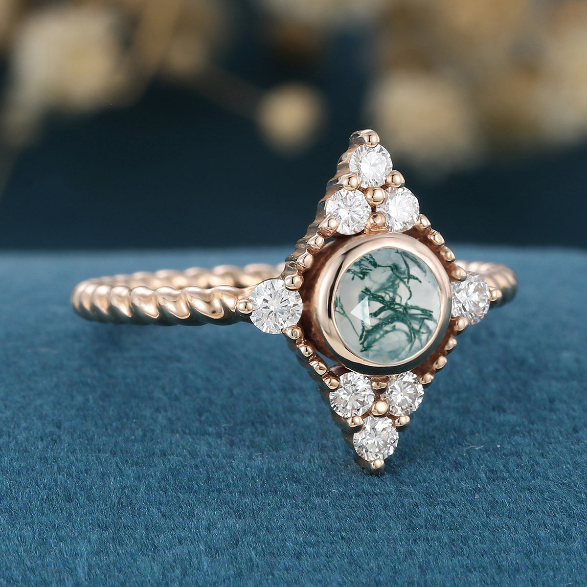 Bezel SetSet Round cut Moss Agate Halo Gold Engagement Ring