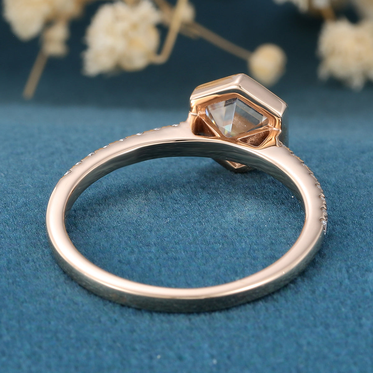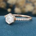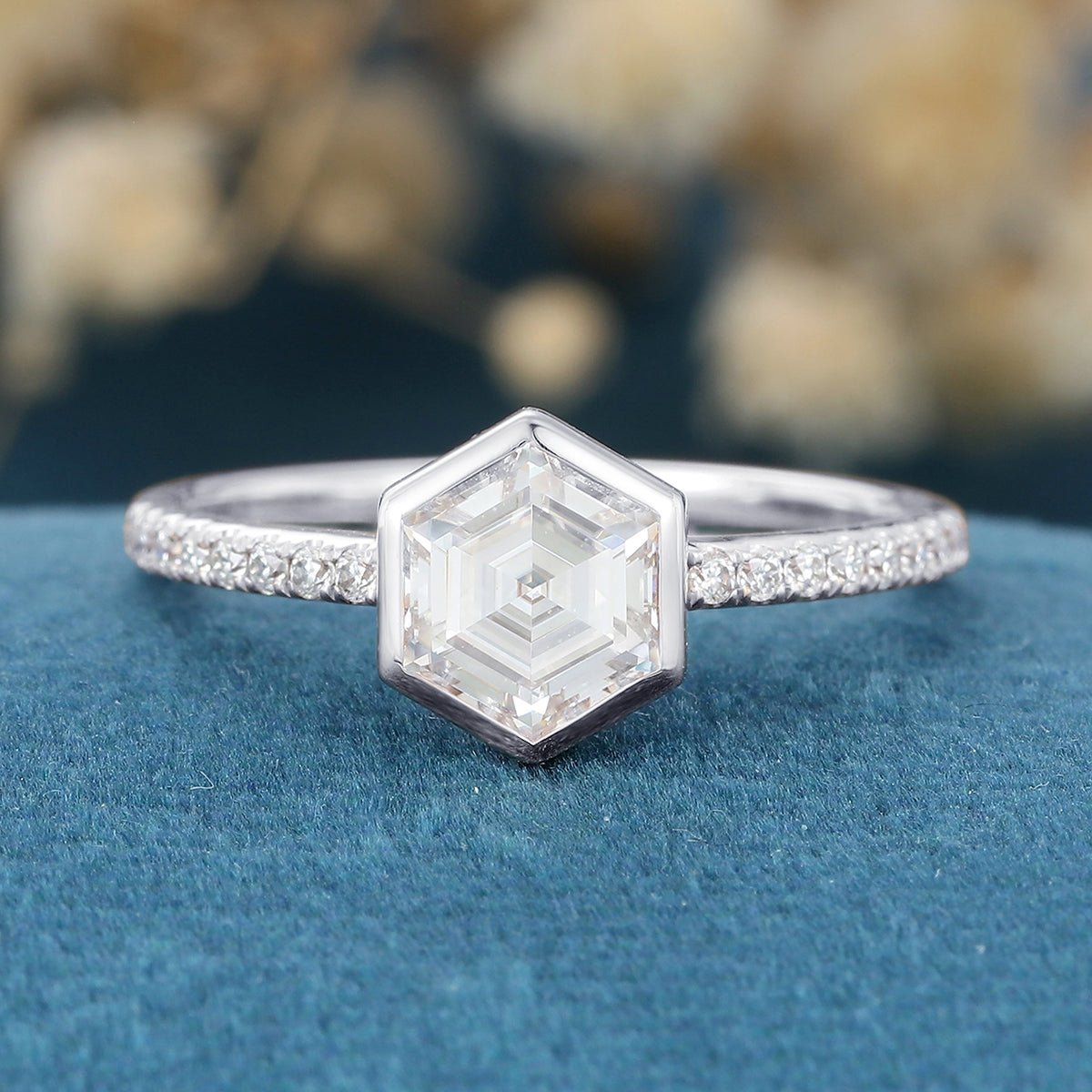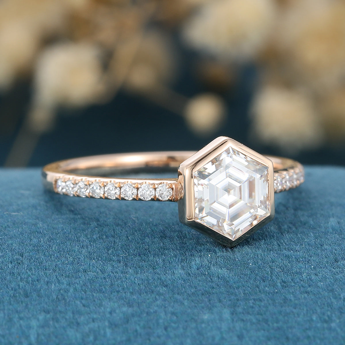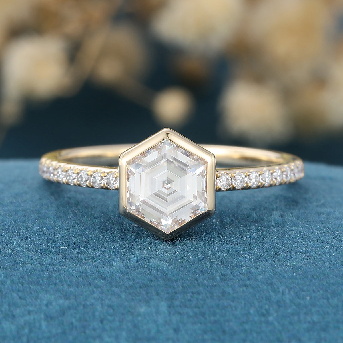 Bezel setting Hexagon cut Moissanite Half Eternity Gold Engagement Ring