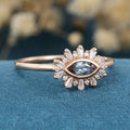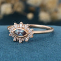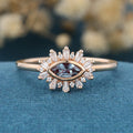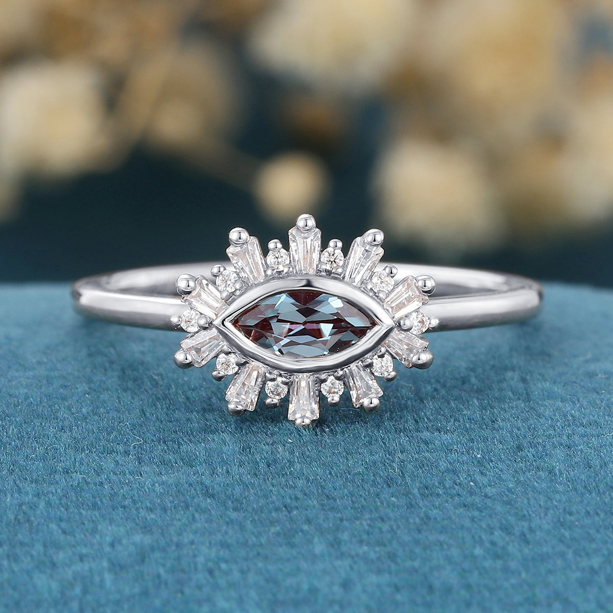 Bezel setting Marquise cut Lab Alexandrite Halo Moissanite | Diamond Gold Engagement Ring