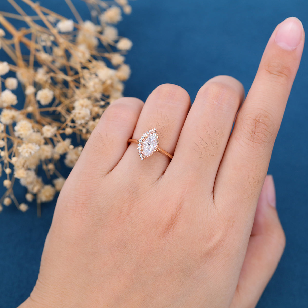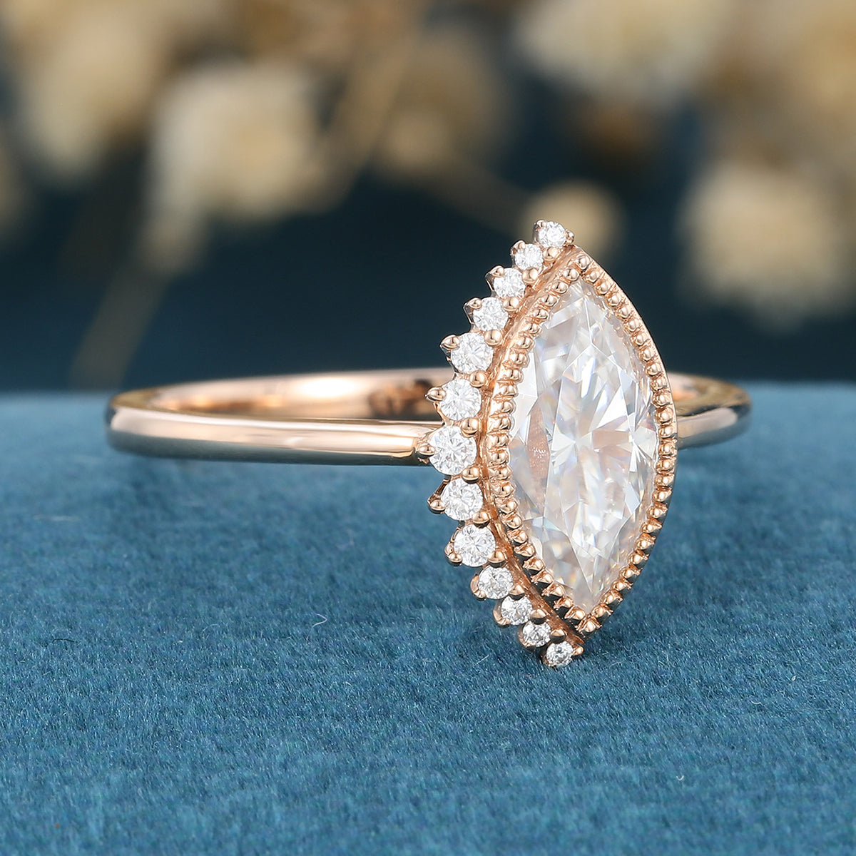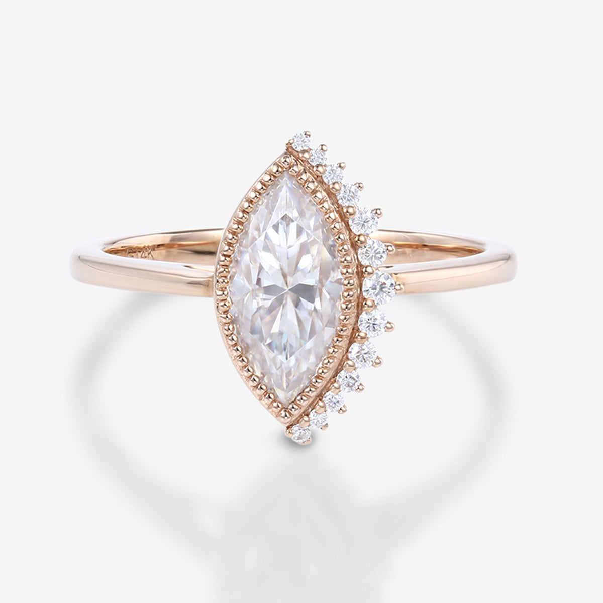 Bezel setting Marquise cut Moissanite Gold Engagement Ring