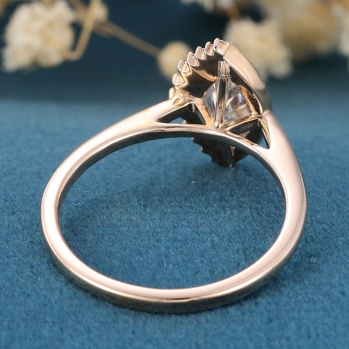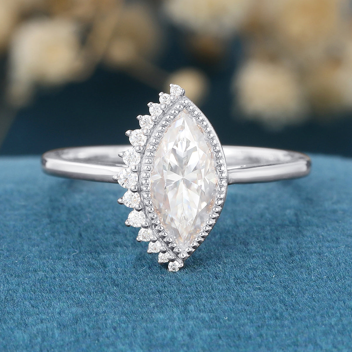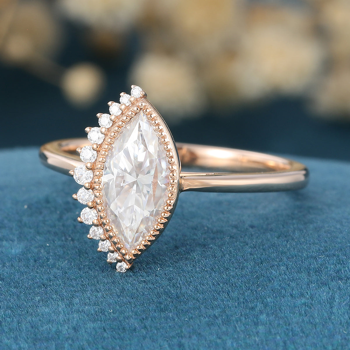 Bezel setting Marquise cut Moissanite Gold Engagement Ring