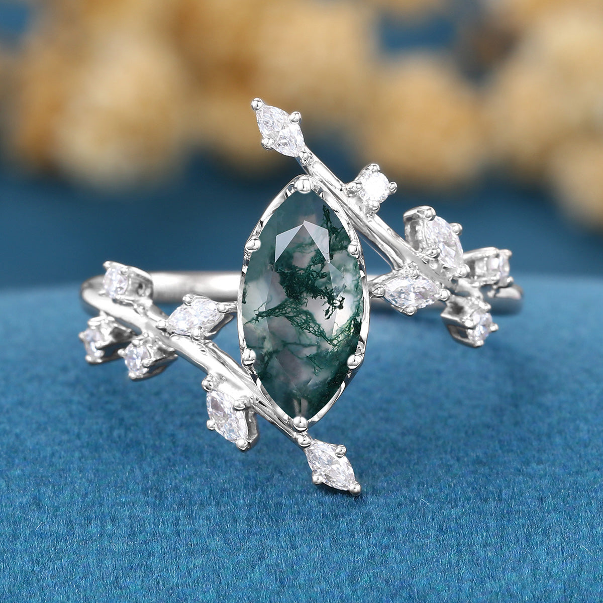 Type: Moss Agate 1.0 Carat Size: 5 x 10 mm Shape: Marquise cut Total weight: 2.7g(Depending on the ring size) |