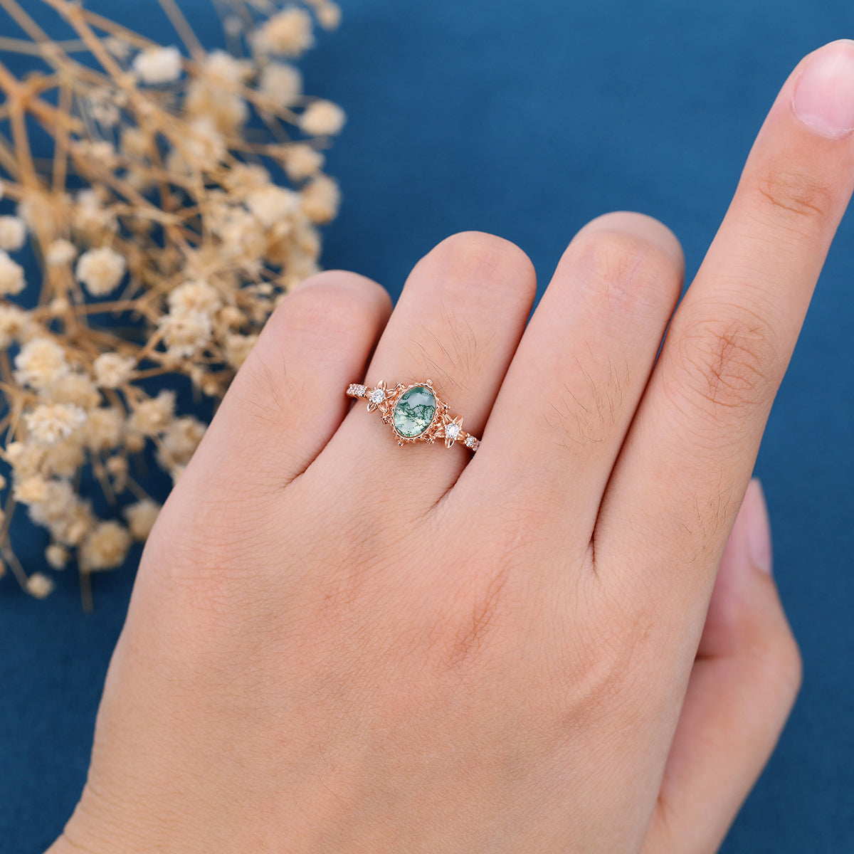 Type: Moss Agate 1.0 Carat Size: 5 x 7 mm Shape: Oval Cut Total weight: 2.32g(Depending on the ring size) |