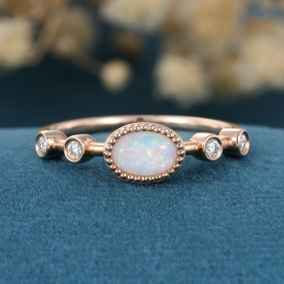 Bezel setting Oval cut Opal Gold Engagement Ring