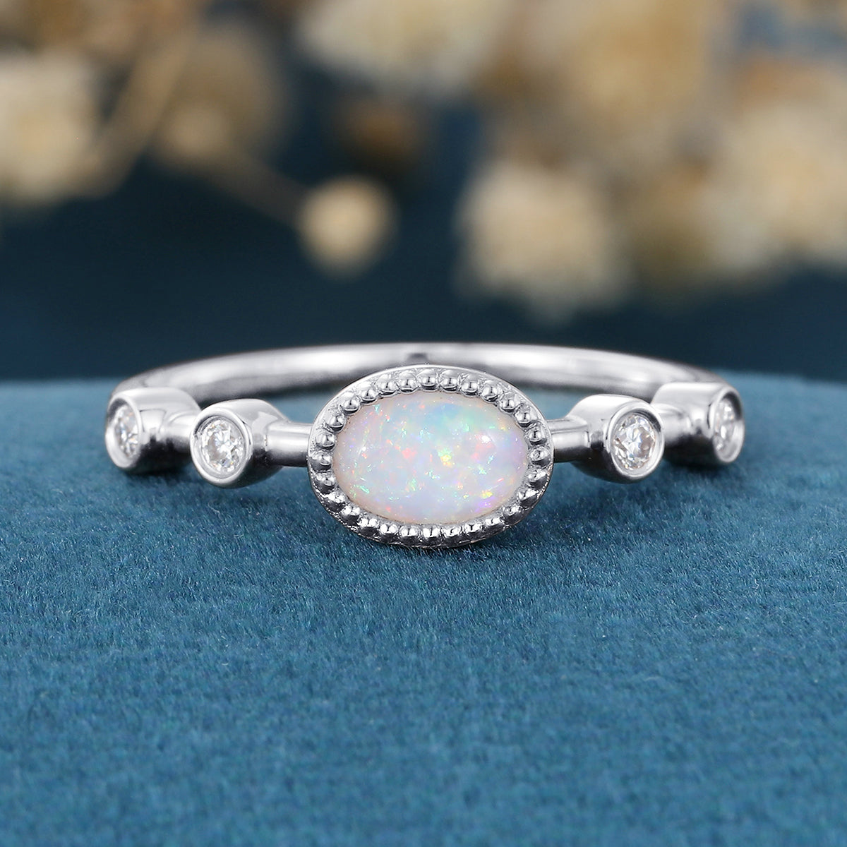 Type: Natural Opal 0.3 Carat Size: 4 x 6 mm Shape: Oval cut Band Width: 1.3 mm / Band Thickness :1.2 mm Total weight: 1.9 g (Depending on the ring size) |