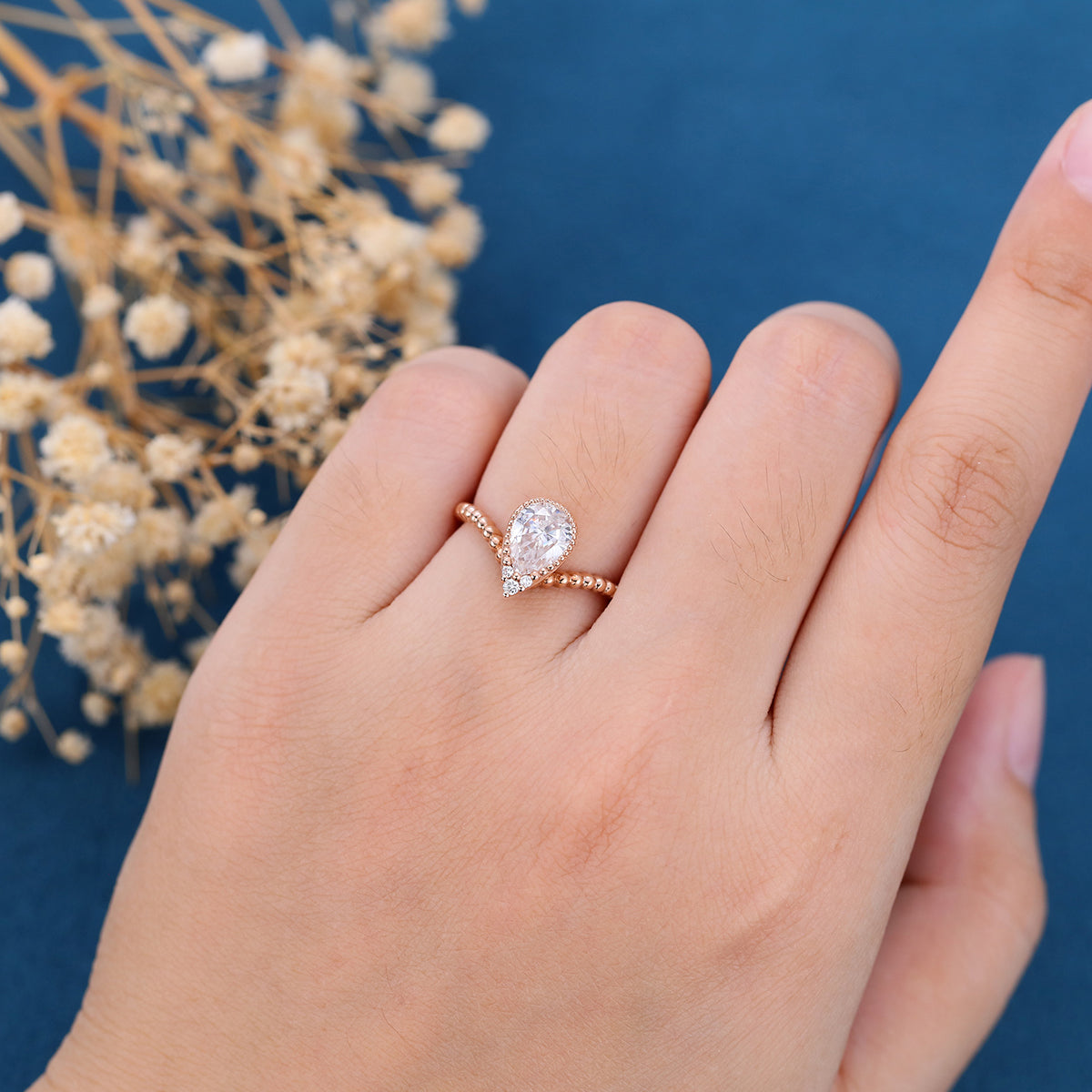 Type: Moissanite 1.2 Carat Size: 6 x 8 mm Shaped: Pear cut The band Width: 1.7 mm | Thickness :1.2 mm Total weight: 2.6 g(Depending on the ring size) |