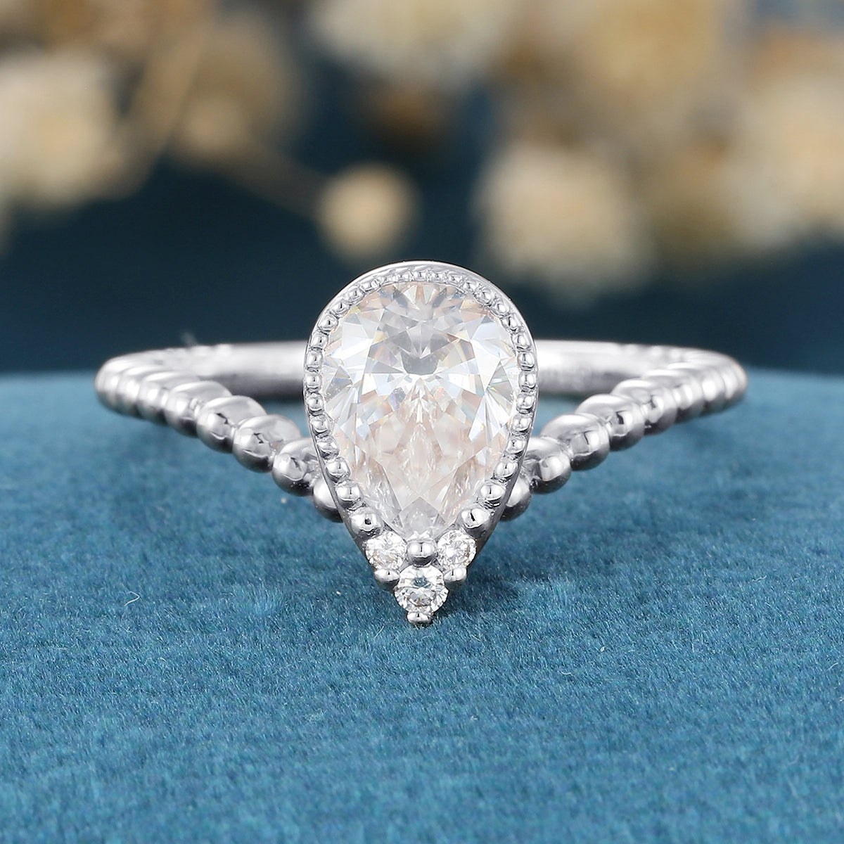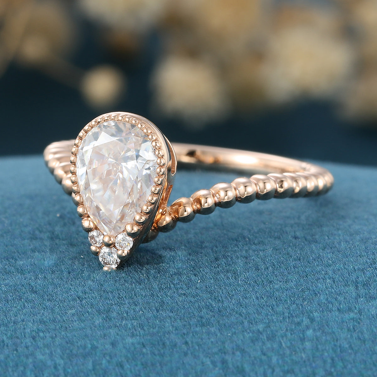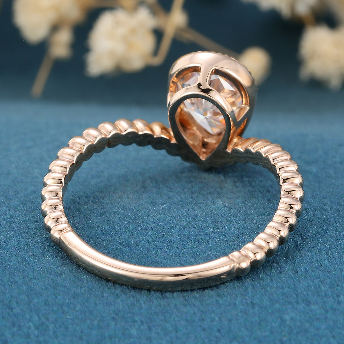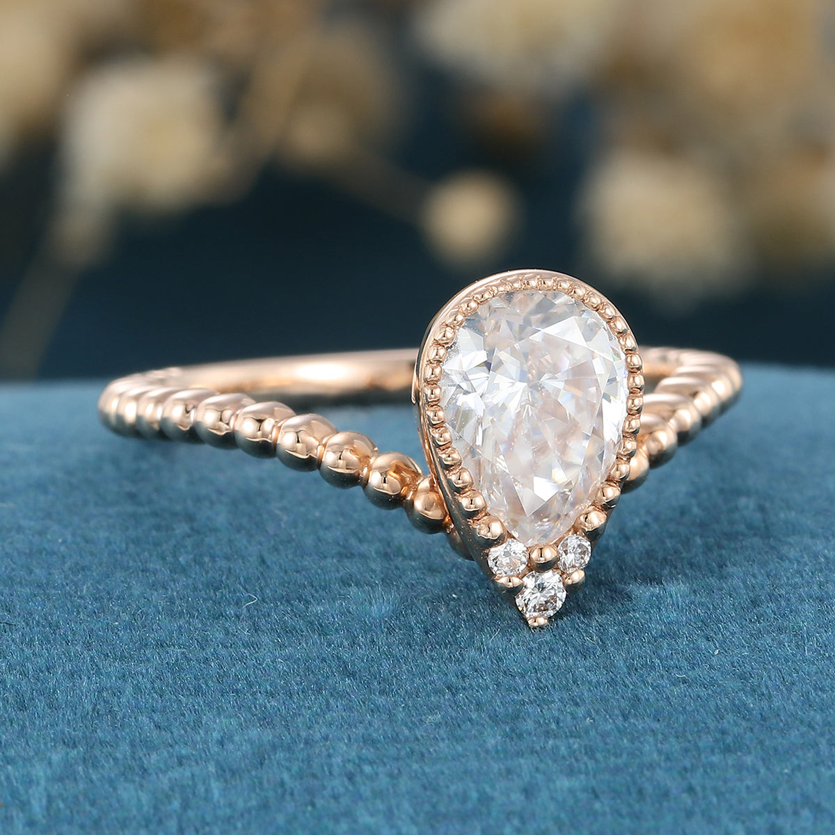 Bezel setting Pear cut Moissanite Gold Engagement Ring
